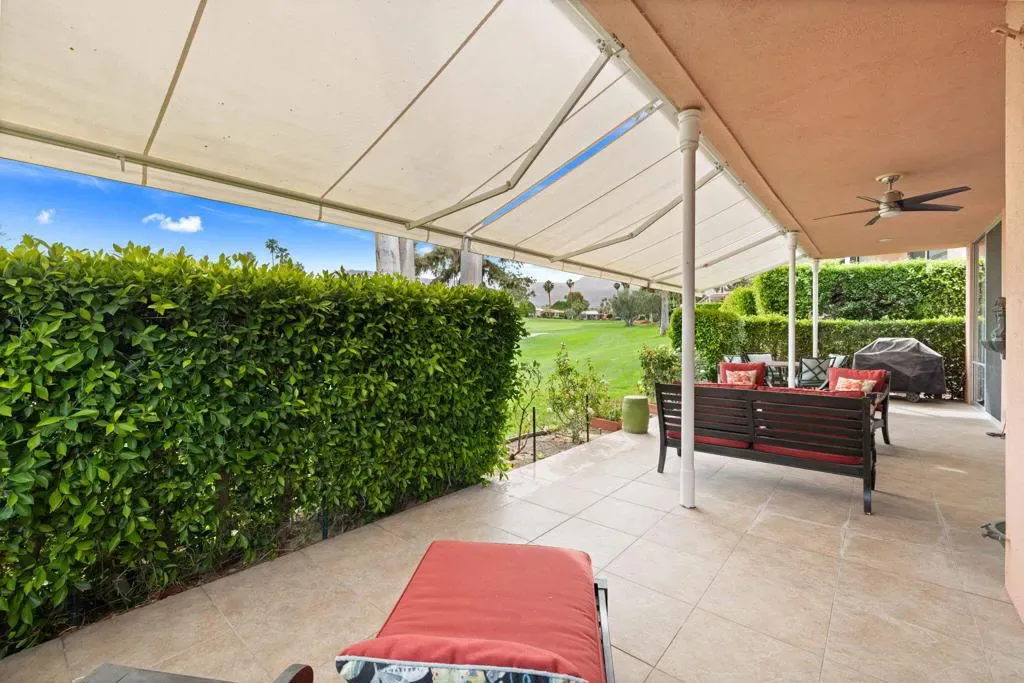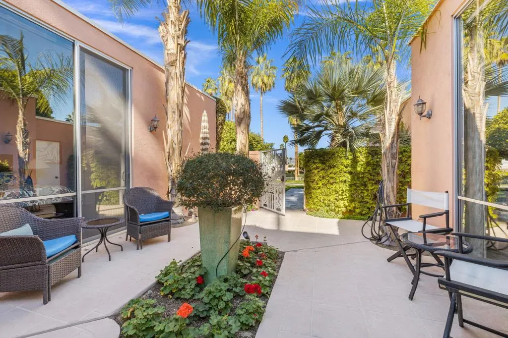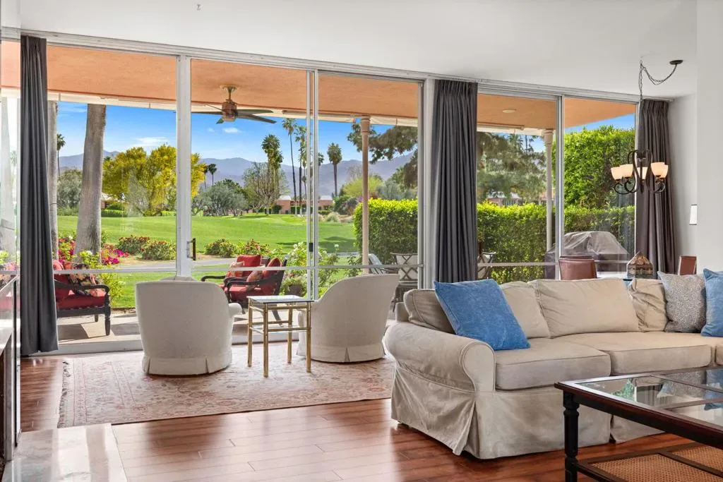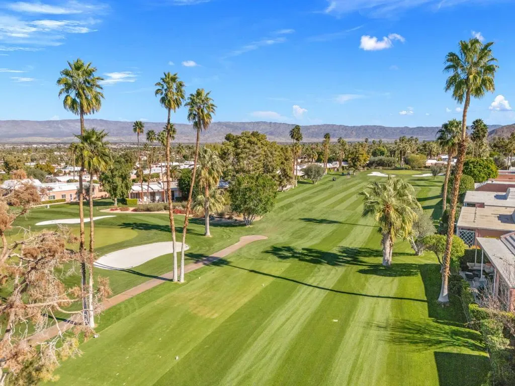 Panoramic south-facing views across the 15th green set the tone for this beautifully positioned Marrakesh residence. Overlooking the fairway with the San Jacinto mountains rising beyond, this expanded B Plan captures the very best of desert light, orientation, and location.A gorgeous private courtyard entry welcomes you inside, where 2,120 square feet offer a thoughtfully enhanced layout with a professionally added third bedroom and three full baths–an increasingly desirable configuration within the community.The living and dining areas open toward the golf course, framing sweeping fairway and mountain views while creating effortless indoor-outdoor flow. Freshly painted interiors provide a clean, move-in-ready presentation, allowing the classic Hollywood Regency architecture to shine. Sold turnkey furnished, the home is ready to be enjoyed immediately.Ideally located with a community pool just across the street and positioned within one of Marrakesh’s most sought-after sections, this residence balances privacy, convenience, and spectacular vistas.Residents of Marrakesh Country Club enjoy access to an array of exceptional amenities, including an 18-hole executive golf course, tennis, pickleball, bocce ball, croquet, a fully equipped fitness center, and a beautifully remodeled clubhouse offering both casual and fine dining, all framed by sweeping mountain and fairway views. Ideally located just moments from El Paseo’s renowned shopping and dining, Marrakesh offers a lifestyle defined by elegance, ease, and timeless desert appeal. A rare opportunity to own a classic John Elgin Woolf-designed home and experience the enduring magic of Marrakesh.