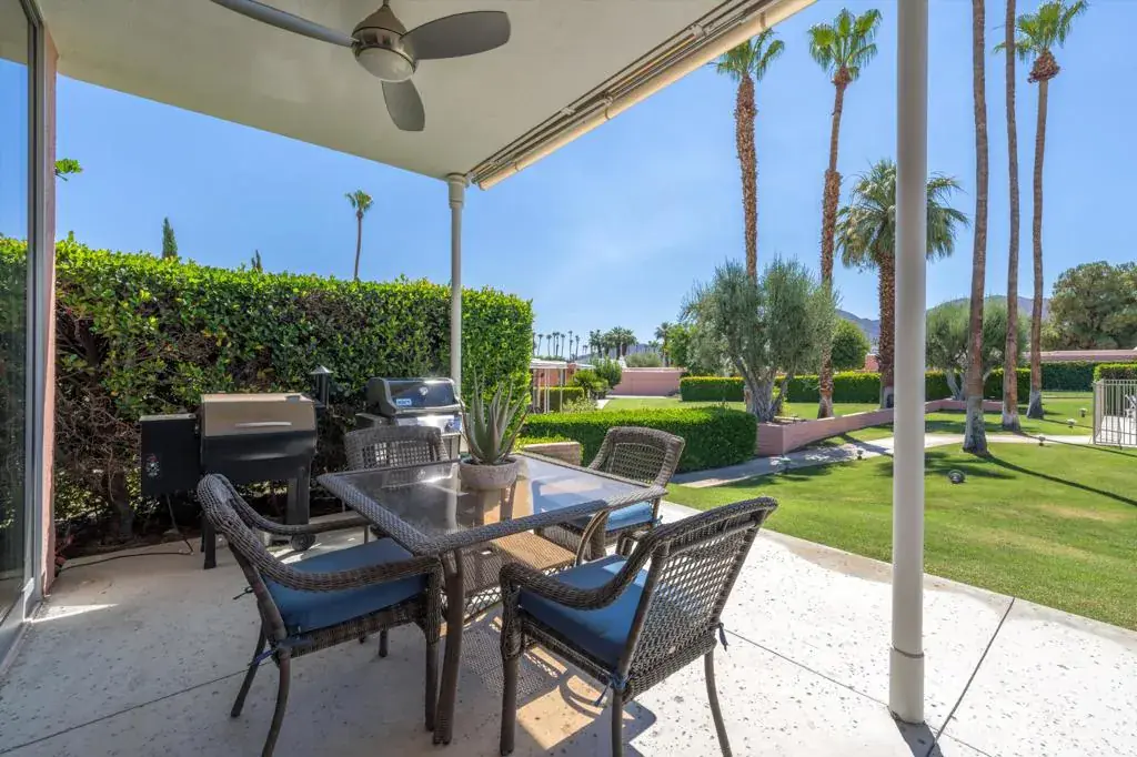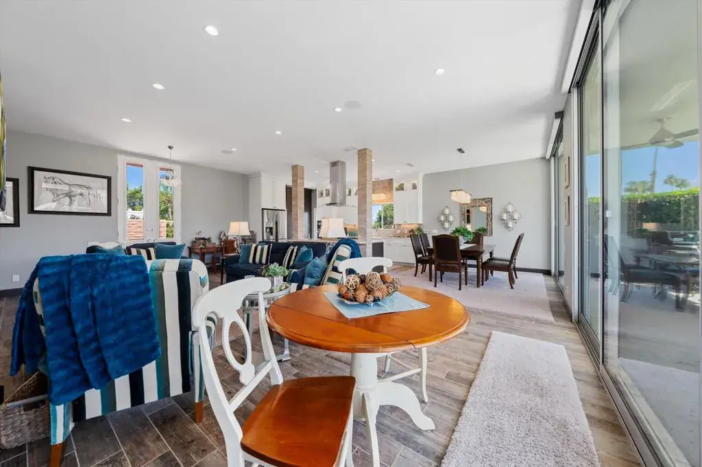 RENTED Dec 13, 2025 – March 31, 2026. Enjoy your unforgettable Desert vacation in this fully remodeled Hollywood Regency gem with state-of-the-art modern features. Nestled in the iconic Marrakesh Country Club on a quiet street with beautiful mountain views and close to the clubhouse, this home offers perhaps the very best location in the club. Attention to every detail and gorgeous finishes are seen throughout this meticulously upgraded home. Walls of glass create an airy feeling and bring in the beauty of the outdoors for an exceptional indoor-outdoor living experience. Entirely reimagined open concept chef’s dream kitchen features breakfast bar, two-toned custom cabinets, gas cooktop, counters are topped with quartz slab and striking matte marble tile backsplash for an elegant touch. Both bedroom suites offer lavish bathrooms inspired by dream magazines with striking honed marble brick subway tiles, luxurious vanities and curbless showers. Primary en-suite bathroom features a free-standing soaking tub that exudes luxury and comfort. Porcelain wood-look plank tiles, all new double pane sliders, fireplace, motorized window screens and retractable awnings complete this amazing home. Marrakesh is located just minutes away from the famed El Paseo Drive with world-class shopping and dining and within close proximity to the McCallum Theater and the world-renowned Indian Wells Tennis Gardens. Renter seasonal club priviledges are available and may be added with additional cost.