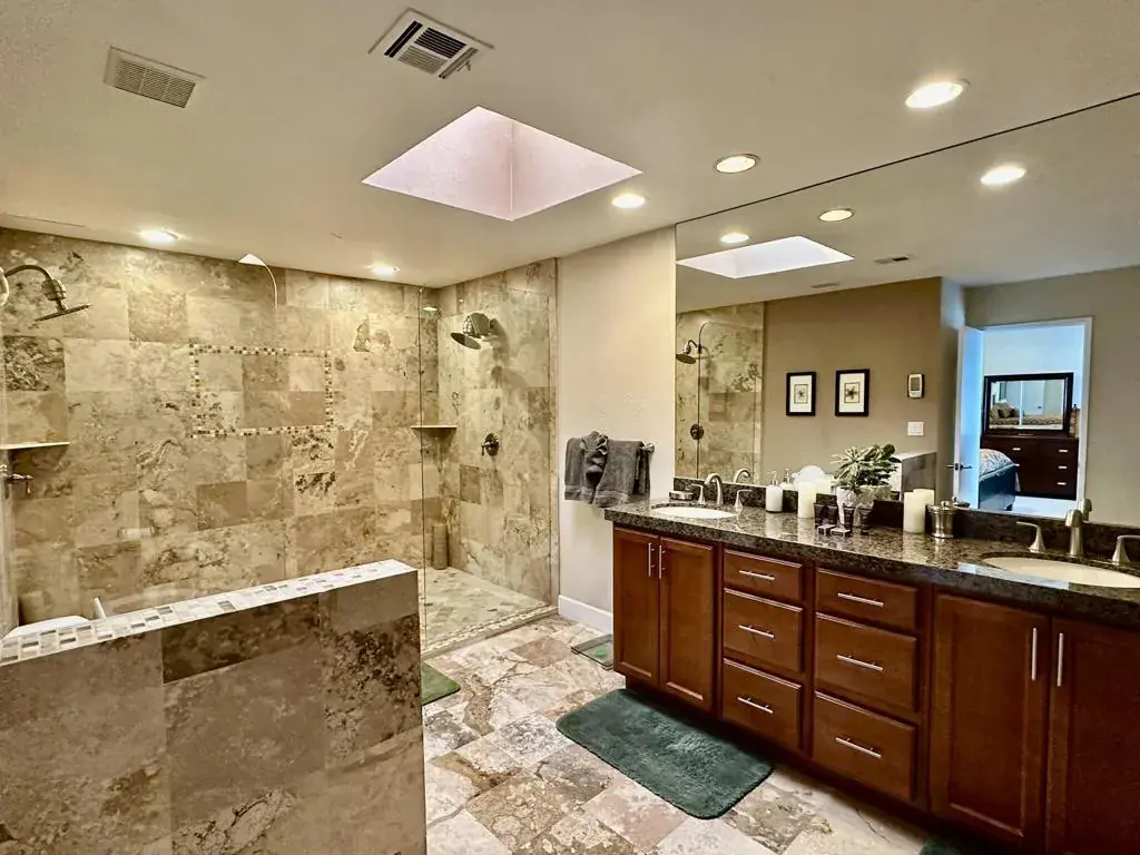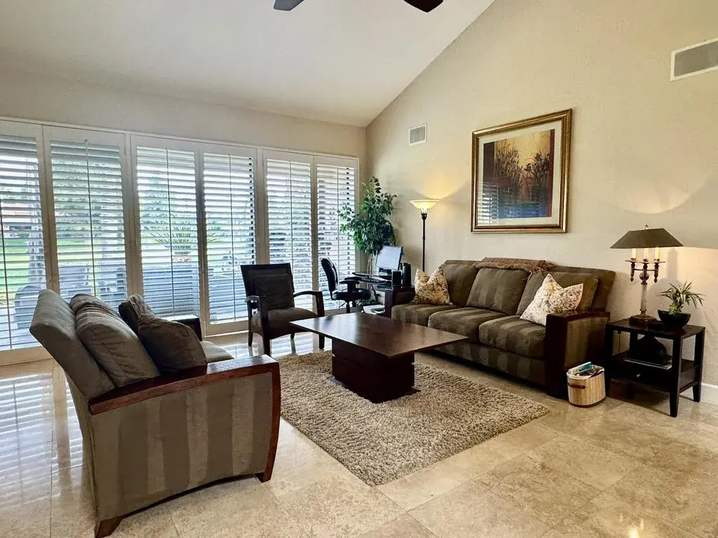 Experience luxury living in this spectacular 3000 Series condo featuring a spacious den. Completely remodeled and beautifully decorated with the finest finishes, it boasts a gourmet kitchen with granite countertops, new cabinetry, and a wet bar complete with an icemaker. The converted atrium enhances the open feel, while flat-screen TVs and surround sound elevate your entertainment experience. Enjoy the thoughtfully selected lighting and exquisite slate flooring throughout, including the patio and bathrooms. The extended slate patio, facing east on the fairway, is perfect for entertaining, complete with a gas barbecue. This condo is truly an entertainer’s dream!