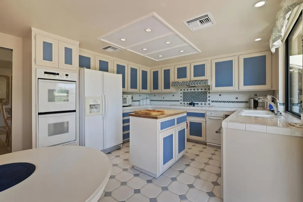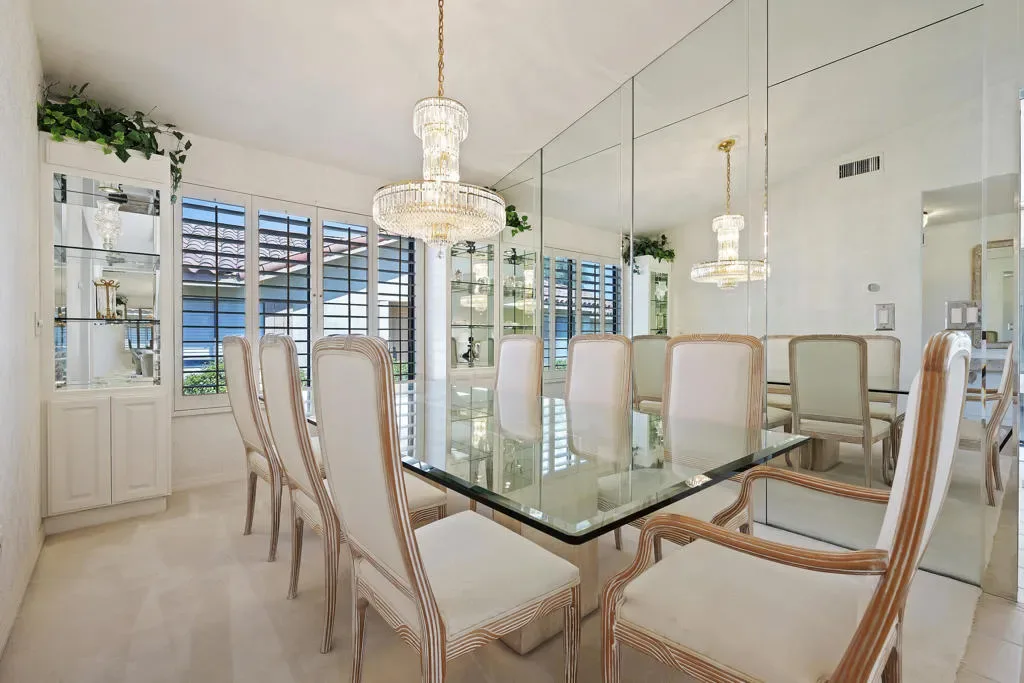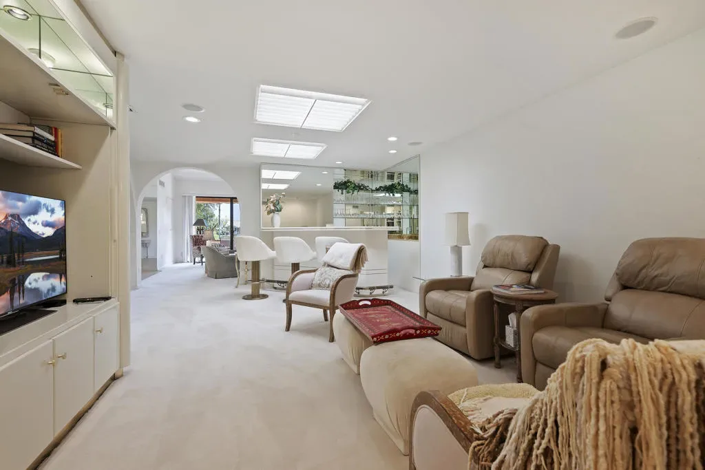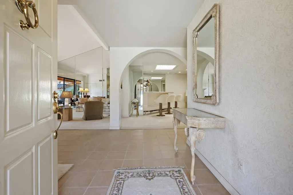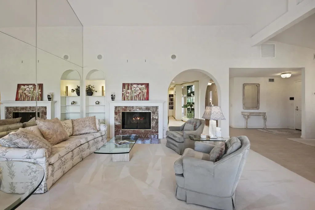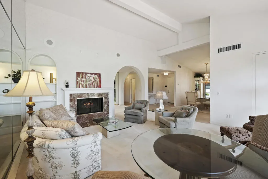 Welcome to this beautifully situated south-facing residence offering sweeping views of the fairway, tranquil lake, and surrounding mountains. Ideally positioned within Monterey Country Club, this highly desirable Max Plan 3000 floor plan features approximately 2,200 sq. ft. of thoughtfully designed living space.This spacious home includes 2 generously sized bedrooms, 3 full bathrooms, and an additional powder room. A versatile den/media room–complete with a wet bar and wine refrigerator–creates the perfect setting for entertaining or relaxing.The open-concept kitchen, living, and dining areas are filled with natural light, enhanced by the home’s premium southern exposure. Step outside to the rear paver-tiled patio, where two retractable awnings provide shade and comfort while you enjoy picturesque golf course and mountain views–ideal for morning coffee or evening gatherings.Additional features include plantation shutters, ceiling fans throughout, mirrored closet doors, and elegant mirrored accent walls in the living and dining areas. The attached 2-car garage offers finished flooring for added functionality and style.Residents of Monterey Country Club enjoy an exceptional array of amenities, including 27 holes of championship golf, 20 pickleball courts, tennis facilities, a fitness center, and a vibrant clubhouse.Centrally located in the Coachella Valley, this home is just minutes from the renowned El Paseo, known for its upscale shopping, fine dining, and art galleries. Nearby College of the Desert and other local conveniences further enhance the appeal of this prime location.