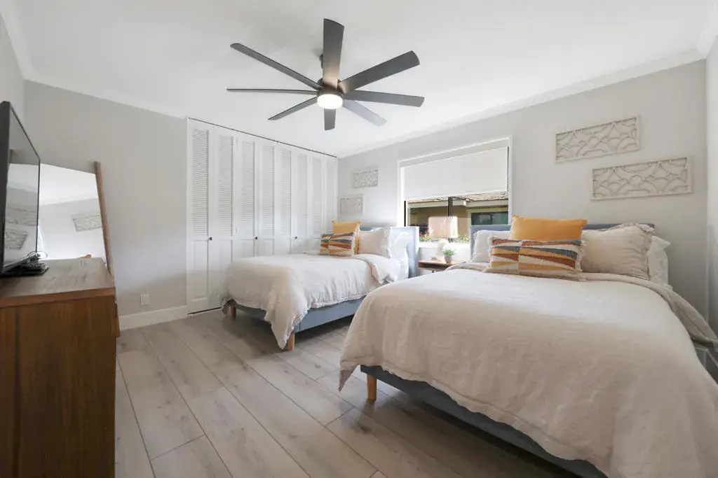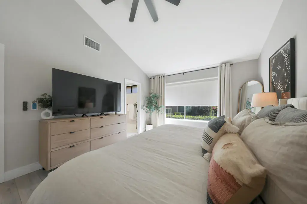 Welcome to this stunning home in Monterey CC, featuring 2 bedrooms plus a den that the owner has added a bed to, and 2 bathrooms. Enjoy a blend of elegant tile and plush carpeting throughout. The airy kitchen boasts quartz countertops and stainless steel appliances, including a wine fridge, all while offering captivating views of the tranquil waterway and mountains. Relax in the inviting living room, complete with a fireplace, and step out to the extended patio with plenty of space for entertaining. This is the perfect seasonal rental for those seeking comfort and style in a picturesque setting!