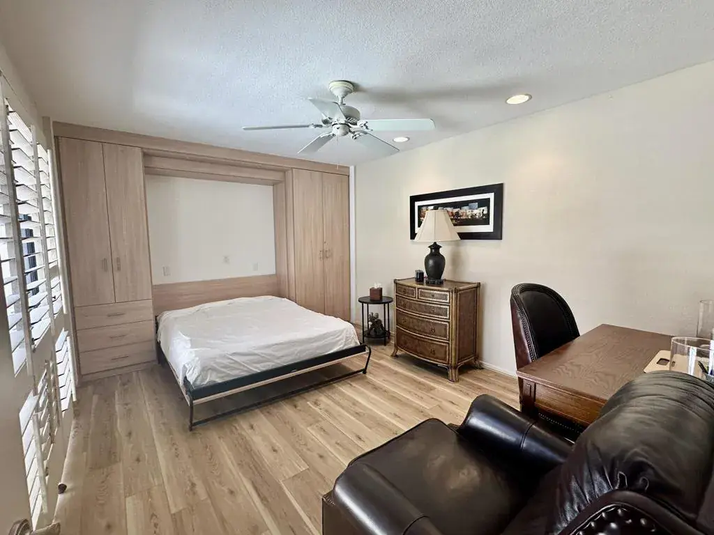 Discover this lovely updated 20 plan condo, boasting 2BD/2BA and ideally located near the end of a tranquil cul-de-sac. The second bedroom features a convenient Murphy bed, allowing for versatile use of the space–perfect for guests or as a cozy office. Enjoy the west-facing patio, which basks in plenty of sunshine and offers stunning views of the surrounding mountains. You’ll appreciate the peaceful setting, just a few steps away from the community pool and spa, making it easy to relax and unwind. Don’t miss out on this fantastic opportunity!