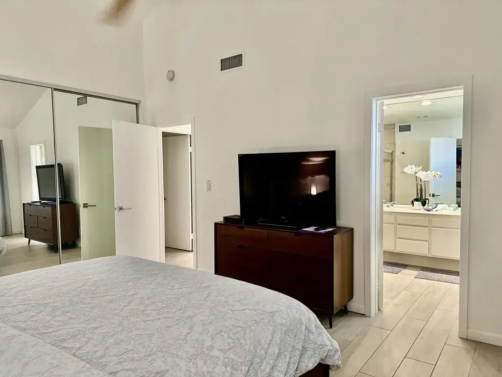 You’ll fall in love with the stunning views of the golf course, water, and mountains from this sleek, modern 30 Plan. This 2-bedroom plus den (which the owner has placed a bed in) unit features an updated kitchen with custom white cabinets, stainless steel appliances, and elegant quartz countertops. The vaulted beamed ceilings and open floor plan create a bright, inviting atmosphere. The master bedroom boasts two spacious closets and an en-suite bathroom with a large tiled shower and double vanities. The den features custom built-ins & a working desk! Don’t miss out–call today!