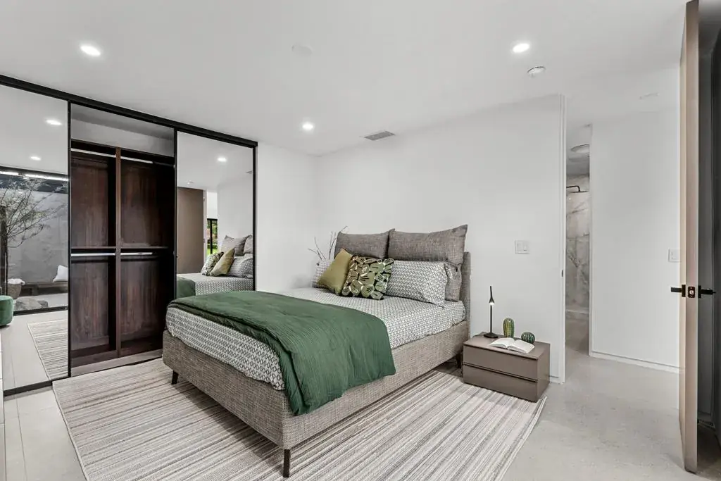 Situated on the fairway of a Ted Robinson-designed golf course, with sweeping south-facing mountain views, this exquisitely redesigned 3-bedroom, 2-bathroom home embodies modern luxury and sophistication. Every detail has been thoughtfully curated, from the custom Italian cabinetry flown in from Italy and installed by master craftsmen, to the top-of-the-line Miele appliances that define the gourmet kitchen. Step through the custom pivot front door into an expansive, open-concept living space where sleek contemporary design meets high-end functionality. Upgrades include all-new windows and sliders, including a stackable slider in the living room that opens seamlessly to the outdoor living space, blending indoor and outdoor living perfectly. Level 5 smooth drywall, porcelain tile flooring, and a no-baseboard design with metal reglets create floating walls that enhance the home’s modern aesthetic. The home also features spa-inspired bathrooms, walk-in showers, a Zen-inspired atrium, and custom built-out closets, making every space both luxurious and inviting. Residents of Monterey Country Club enjoy a clubhouse, fitness center, 27 holes of Ted Robinson-designed golf, 6 tennis courts, 33 pickleball courts, 4 lane bocce ball court, and 37 pools and spas.