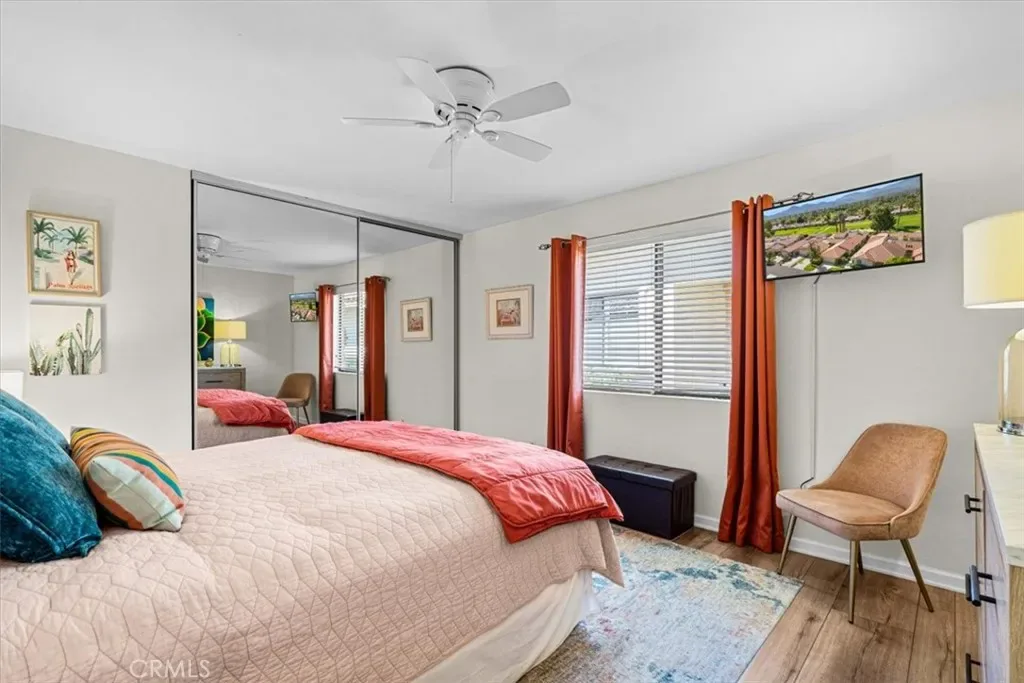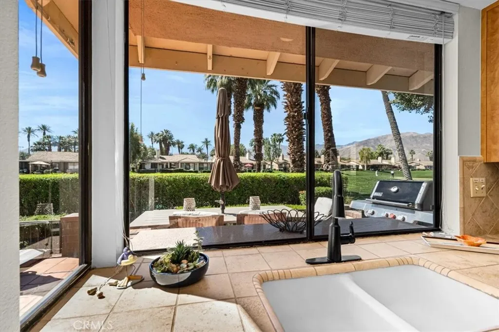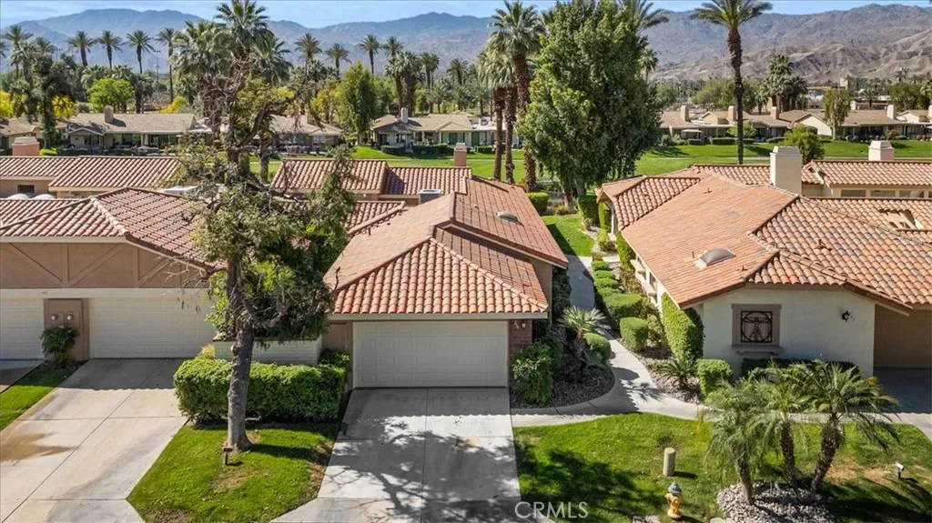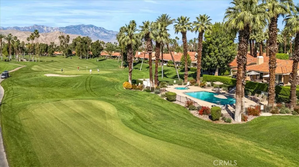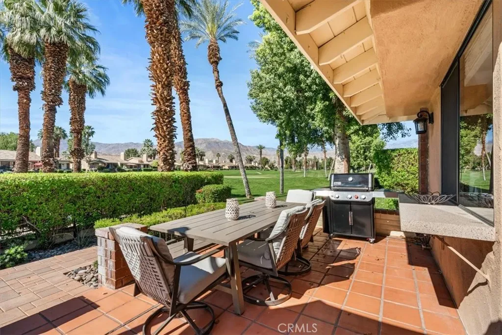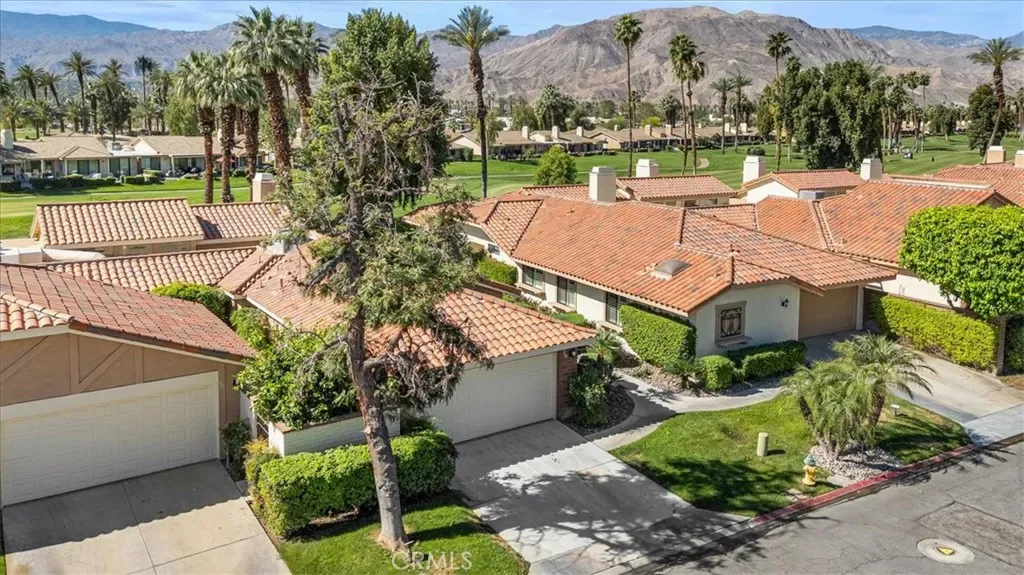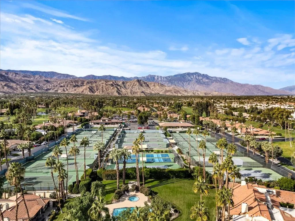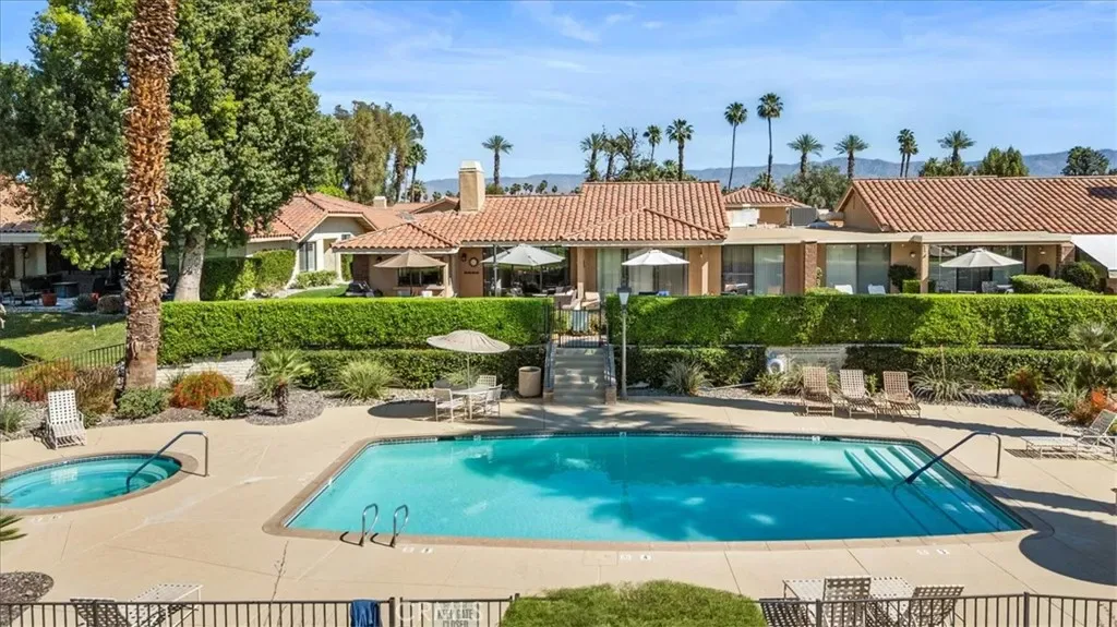 This one checks ALL the boxes! Do you like gorgeous views? CHECK. Do you like a backyard-like pool that you don’t have to maintain? CHECK. Do you like having a beautiful vacation home that doubles as a great investment with short term rental potential? CHECK. This is it and it’s in Monterey Country Club, one of the most sought after locations in the Palm Springs valley, and one of the few that still allows short term rentals. This well maintained, updated END unit has 2 bedrooms and a flex space currently staged as a third bedroom. Bright, clean and airy with a stylish Boho chic aesthetic, you will never want to leave. AC, fridge, washer and dryer only a couple of years old. This unit has the envied, stunning southern views of the Santa Rosas, meaning you get great light all day but not a direct hit from the sun–a major perk here in the Desert. Monterey CC has 37 pools and spas and your new home backs RIGHT up to one of them. It also boasts a vibrant clubhouse, 27 holes of a Ted Robinson designed course, Pickleball, Tennis and Bocce. Monterey CC is in the epicenter of the valley right between Palm Springs and La Quinta, as well as famous El Paseo offering fine dining and shopping and Disney’s Cotino downtown area soon to be opening. The McCallum Theatre is walking distance and Acrisure Arena and Palm Springs International are only a short drive. Lucky you!!!