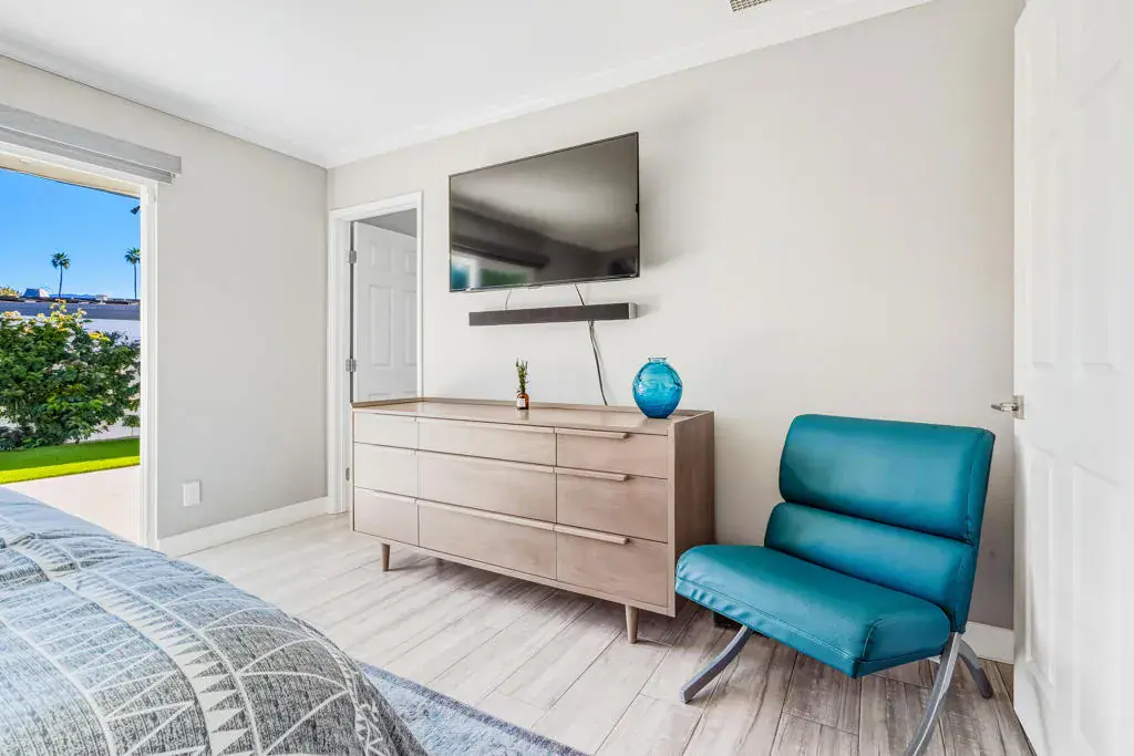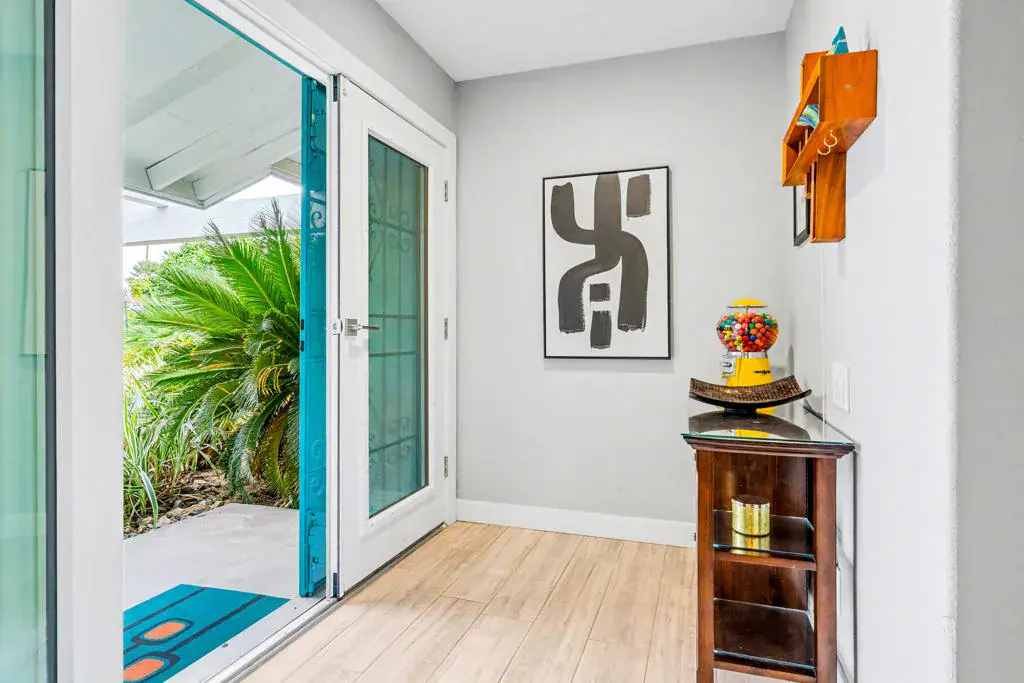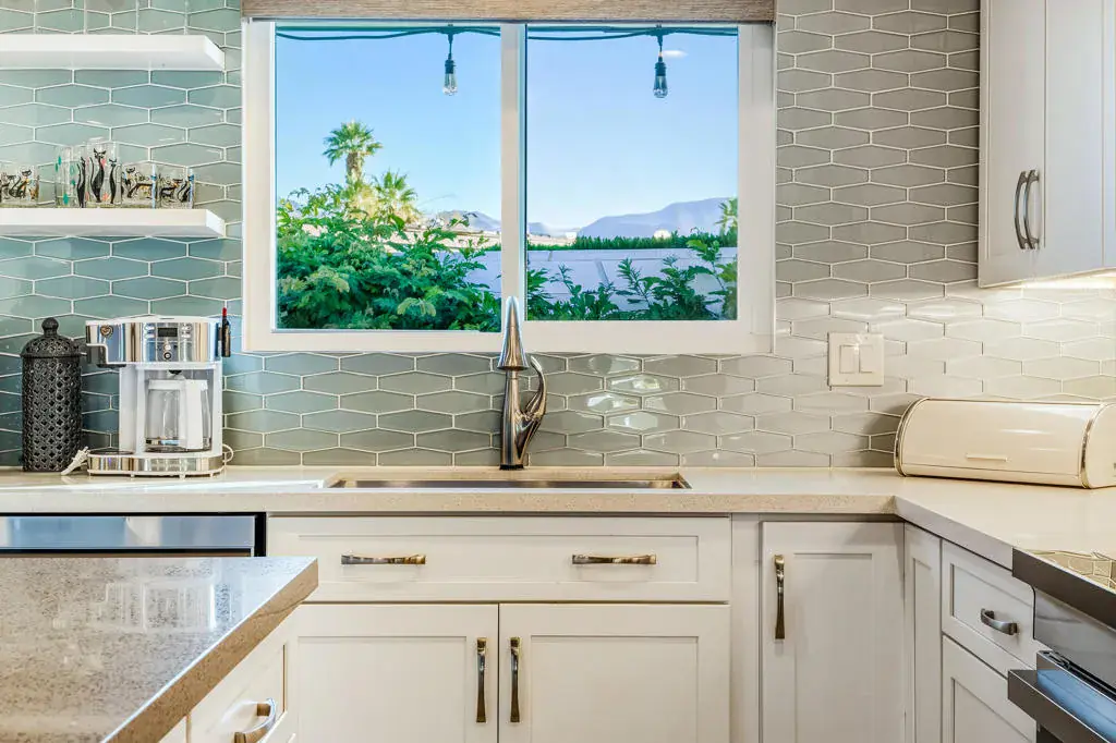 Experience refined living in this beautifully updated central Palm Desert residence, where mid- century design meets thoughtful functionality. The layout has been skillfully transformed into three bedrooms with (generous storage and closet space) plus a formal dining room that flows into kitchen and great room. You’re greeted by a bright, open Great Room highlighted by oversized porcelain tile flooring and a sleek, modern kitchen featuring quartz countertops, a quartz waterfall island, soft-close cabinetry, and premium stainless steel appliances. The chef’s kitchen is equipped with three ovens (including two convection), an induction range with vented hood, and a high-efficiency dishwasher, making it ideal for both everyday cooking and entertaining. Looking out the kitchen, dining and bedroom windows you are treated to stunning southern Mountain Views. Both fully renovated bathrooms offer a spa-like feel with high-end fixtures, designer finishes, and meticulous attention to detail. Most major systems including air conditioning, electrical and evaporative cooler are all less than 5 years new. Designed for modern convenience, the home functions as a fully integrated smart home, allowing remote control of lighting, window coverings, temperature, and electronic systems from your phone or computer. Energy efficiency is enhanced with an owned solar system complete with two batteries, delivering long-term savings and backup power.Additional standout features include a climate-controlled mitsubishi mini split in garage with motion detection lighting perfect for detailing your car or doing shop work, plus epoxy-coated flooring and a low-maintenance outdoor space with artificial turf, offering year-round enjoyment with minimal upkeep.This exceptional Palm Desert home blends style, comfort, and efficiency in a highly desirable location.