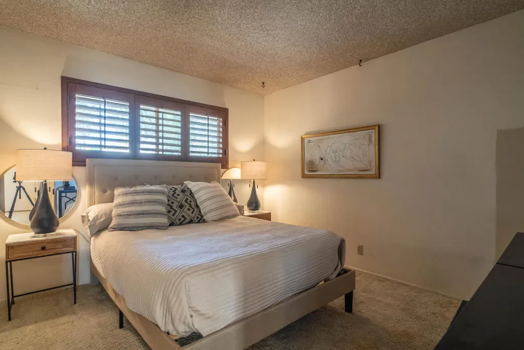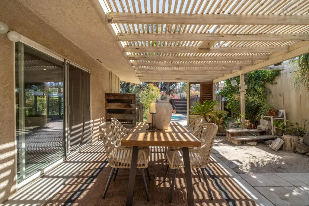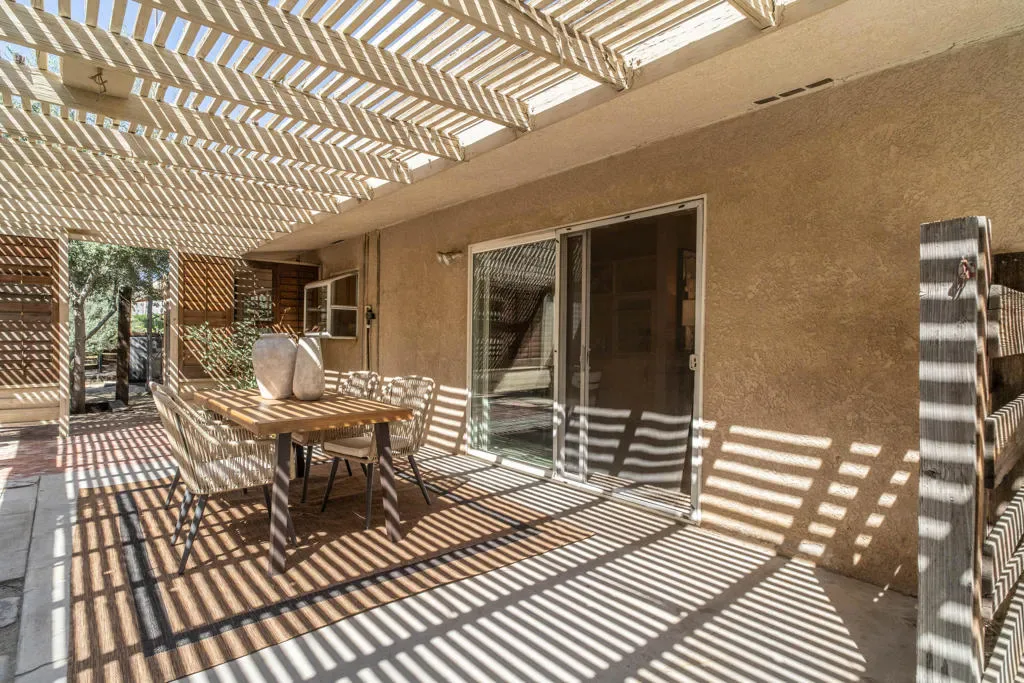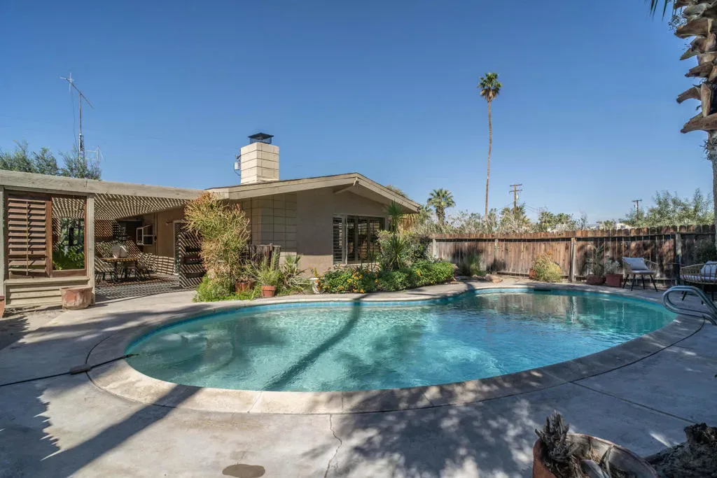 First time on the market, this beautifully maintained ranch-style home offers a rare blend of comfort, charm, and convenience. Featuring three bedrooms and two and a half bathrooms, the thoughtful floor plan provides separation between bedrooms and living spaces, perfect for privacy and functionality. The living room is a showstopper with soaring high ceilings, exposed beams, and a cozy brick fireplace, creating a warm and inviting space for gatherings or quiet evenings at home.The updated kitchen is a chef’s dream, complete with dual sinks, ample counter space, and all the modern conveniences a cook could desire. An ample office space with a separate entrance provides flexibility for remote work, study, or creative projects. The primary suite is a serene retreat, featuring its own fireplace, walk-in closet, and an updated bathroom with a luxurious walk-in shower.Step outside to your private desert oasis: a beautifully landscaped pool area and a wraparound patio offer the perfect setting for entertaining, relaxing, or enjoying the starry desert nights. The property provides a seamless indoor-outdoor lifestyle, ideal for enjoying Palm Desert’s perfect climate. The long, spacious driveway can accommodate RVs, Airstreams, and multiple vehicles with ease.Located in an established, highly desirable neighborhood, this home is just blocks from everyday conveniences. A short drive south brings you to the iconic El Paseo shopping and dining district, while heading west leads to the San Pablo Corridor — Palm Desert’s vibrant city center connecting residential neighborhoods with City Hall, College of the Desert, Civic Center Park, the McCallum Theater, and a wide array of shops and restaurants.With its high ceilings, exposed beams, cozy fireplaces, Plantation shutters throughout the home, modern updates, private pool, and prime location, this home perfectly combines desert charm and convenience. The property is fenced; however, the fencing could benefit from some TLC. With neighboring vacant lots expected to be developed, future block wall fencing may further enhance privacy and long-term value. This home presents a wonderful opportunity to create your ideal desert retreat while enjoying the very best of the quintessential Palm Desert lifestyle.
