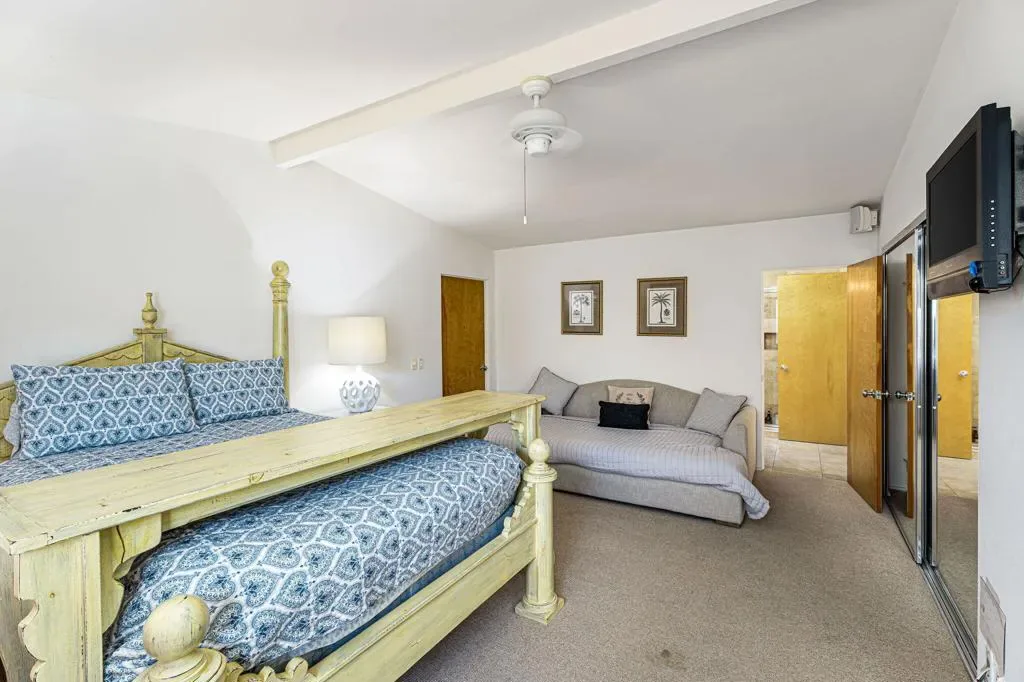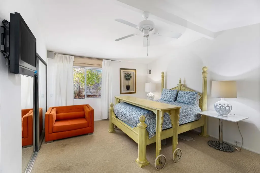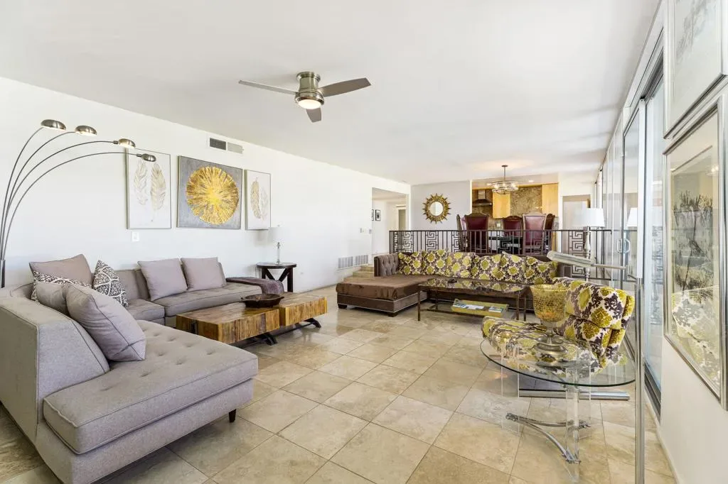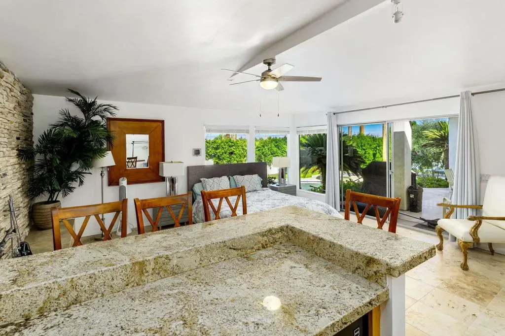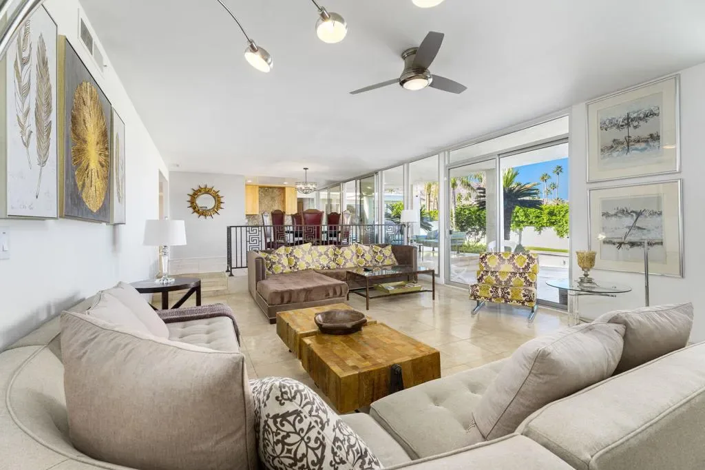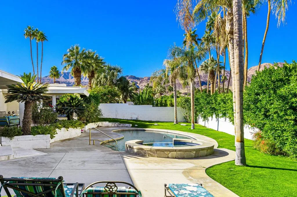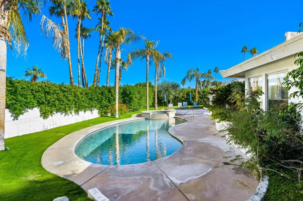 This mid-century home was designed and built in 1964 by Stanton F. Graham in the Eldorado Highlands neighborhood of desirable South Palm Desert. This swanky pad sits on spacious 11,761 SF lot with views of the mountains in all directions. The home offers 4 Beds, 3 Baths, a sunken living room, two en suite bedrooms, covered outdoor space and a pool and spa. You gain complete and tranquil privacy here. Enjoy these architectural bones for your next vacation in the desert.