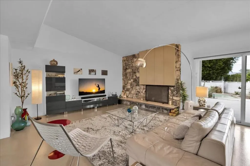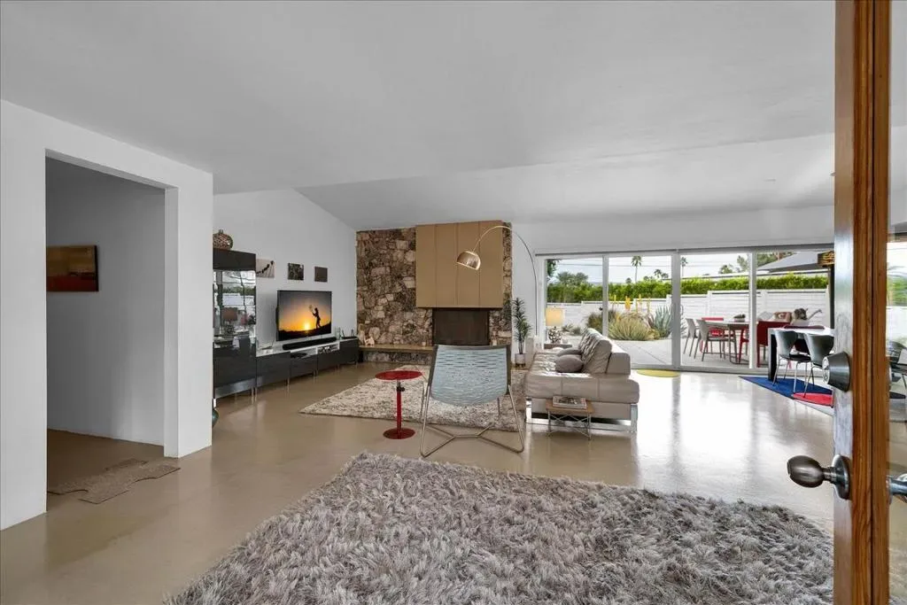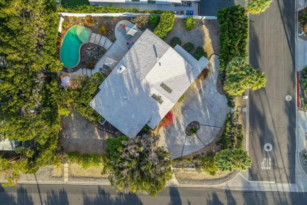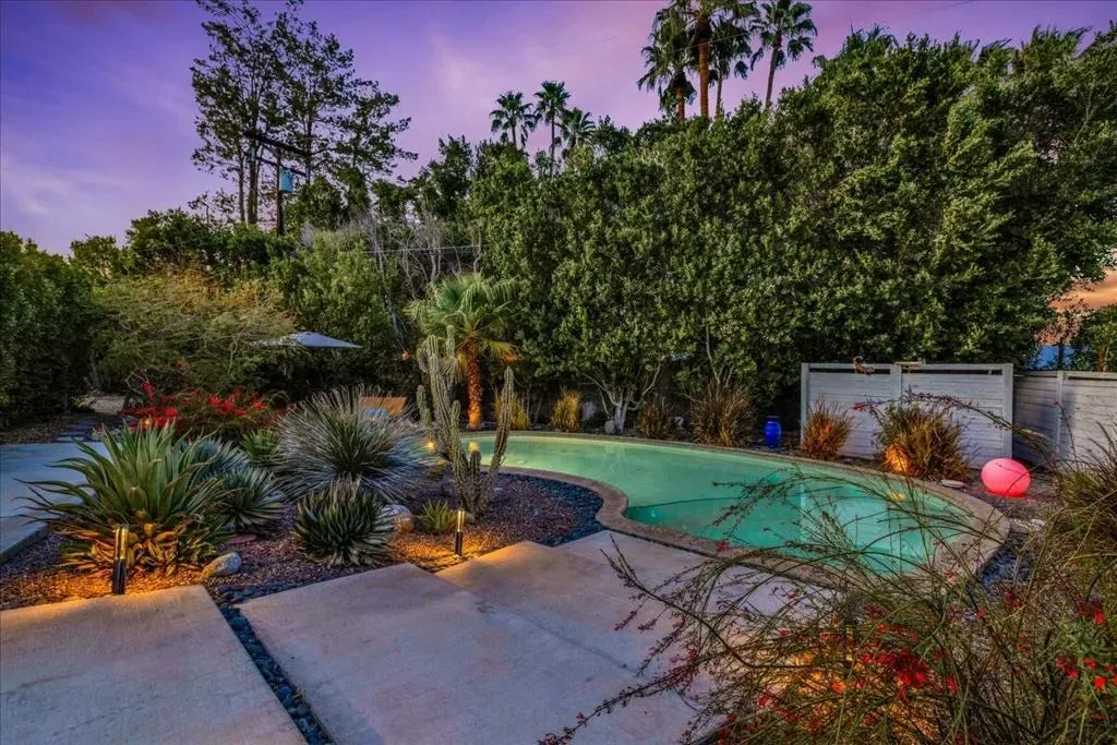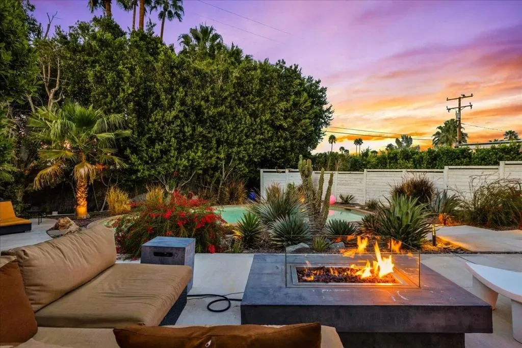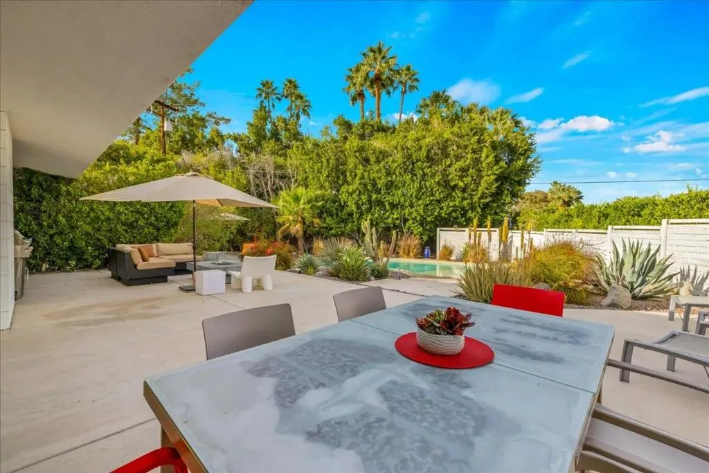 Discover an exceptional, 1963 Mid Century Charles Du Bois AIA classic in its purest form. Your own private enclave behind walls, tall hedges and beautiful breeze block walls on an ultra rare oversized 16,117 sq ft corner lot on a cul-de-sac with no Home owner association dues. Lightly-renovated ‘mini-estate’ combining modern comfort with vintage class! Picturesque mountain views. Courtyard entry sets the stage. Open, spacious floor plan with vaulted ceilings, bright & contemporary. Three bedrooms, two bath. Luxurious pool with extensive patio space, fire-pit, even an outdoor shower–tall privacy hedges, lush desert plantings add to the outdoor appeal. Move right in–Furnished Per Inventory. Immerse yourself in desert vistas. Gourmet kitchen with updated appliances, tons of countertop & cabinetry space. Concrete floors. Glass sliding doors open from each bedroom opens to the outside. Primary suite with sunken tub bath…Modern updates sensitively done, while showing respect to its mid-century core elements. Enjoy the gorgeous interior, lounge poolside, entertain, stargaze–this is the IDEAL renovated property to call HOME! 2-car attached garage. Centrally located, mere minutes from all the attractions of South Palm Desert including El Paseo Shopping & Dining minutes away, neighborhood hiking trails, The Living Desert, Tennis, Golf and More.
