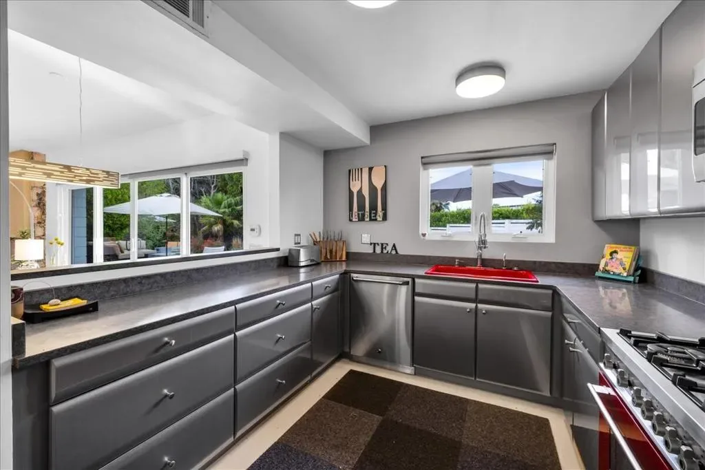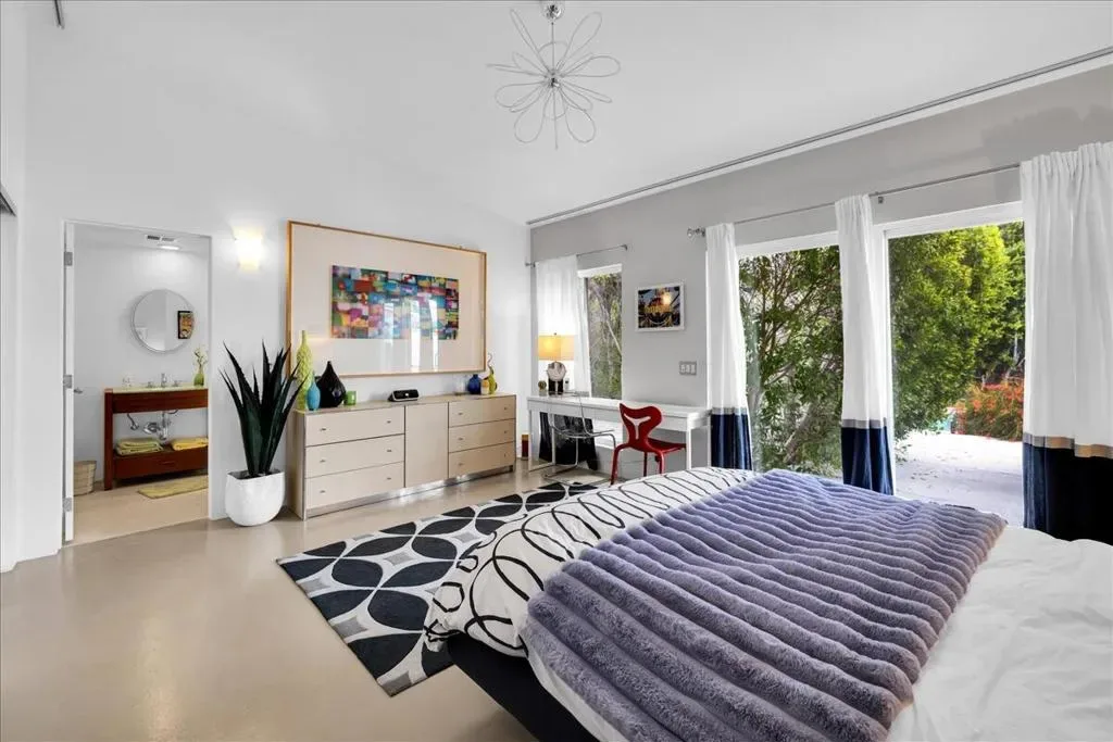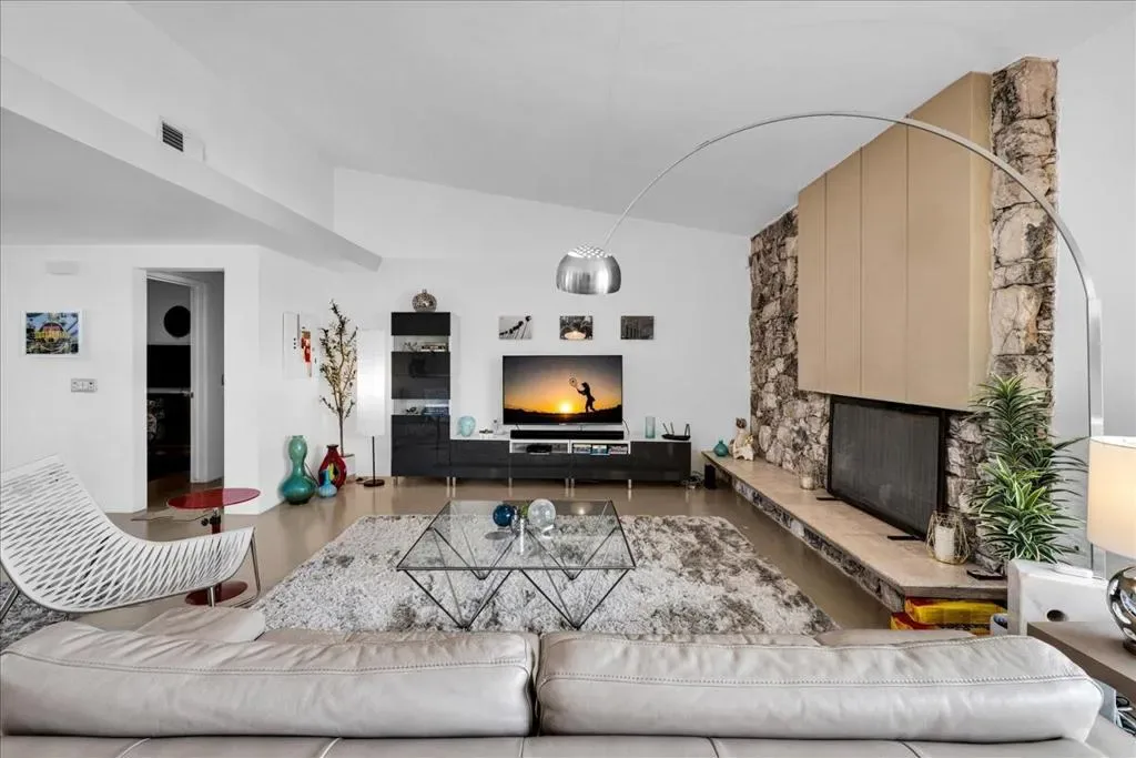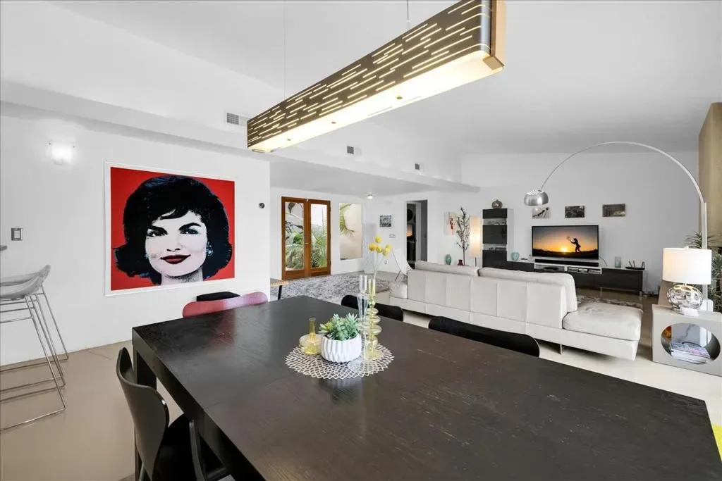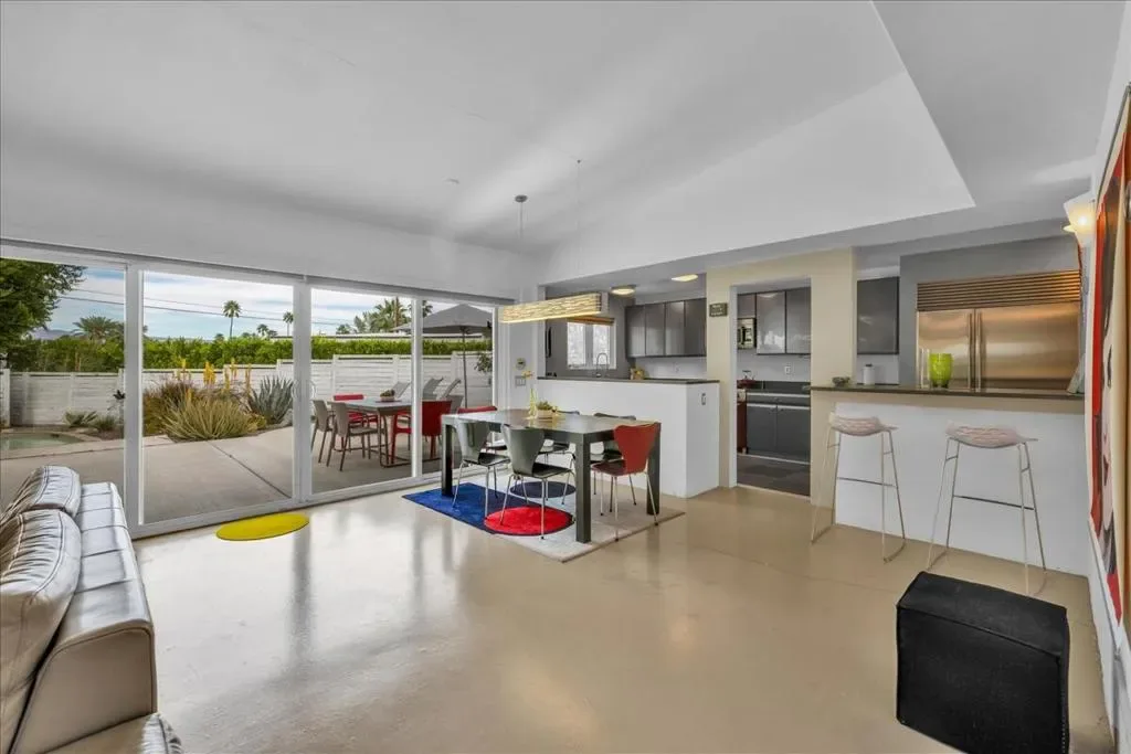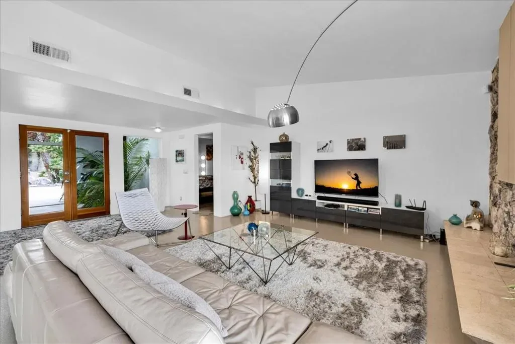 Discover an exceptional, 1963 Mid Century Charles Du Bois AIA classic in its purest form. Your own private enclave behind walls, tall hedges and beautiful breeze block walls on an ultra rare oversized 16,117 sq ft corner lot on a cul-de-sac with no Home owner association dues. Lightly-renovated ‘mini-estate’ combining modern comfort with vintage class! Picturesque mountain views. Courtyard entry sets the stage. Open, spacious floor plan with vaulted ceilings, bright & contemporary. Three bedrooms, two bath. Luxurious pool with extensive patio space, fire-pit, even an outdoor shower–tall privacy hedges, lush desert plantings add to the outdoor appeal. Move right in–Furnished Per Inventory. Immerse yourself in desert vistas. Gourmet kitchen with updated appliances, tons of countertop & cabinetry space. Concrete floors. Glass sliding doors open from each bedroom opens to the outside. Primary suite with sunken tub bath…Modern updates sensitively done, while showing respect to its mid-century core elements. Enjoy the gorgeous interior, lounge poolside, entertain, stargaze–this is the IDEAL renovated property to call HOME! 2-car attached garage. Centrally located, mere minutes from all the attractions of South Palm Desert including El Paseo Shopping & Dining minutes away, neighborhood hiking trails, The Living Desert, Tennis, Golf and More.