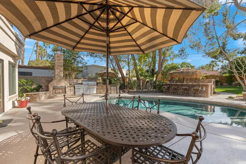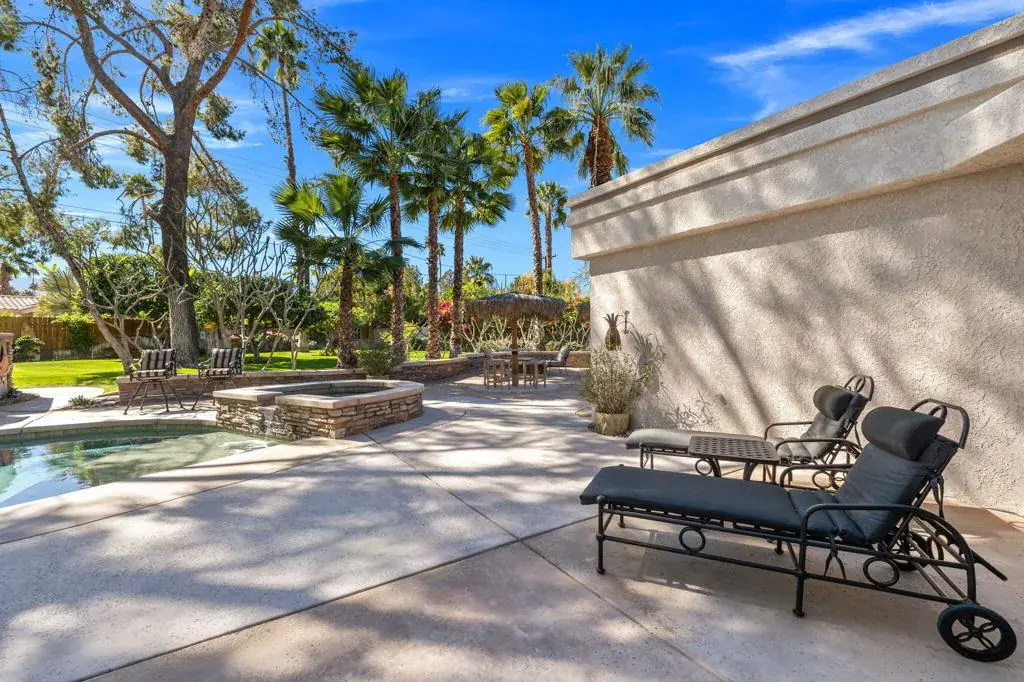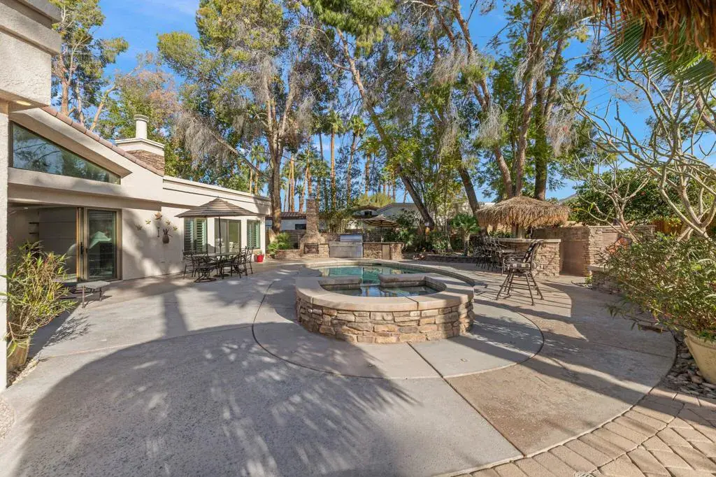 South Palm Desert Cul-de-Sac Retreat with Tropical Pool & Private Casita.Experience refined, resort-style living in this newly and impeccably remodeled 3,123 sq. ft. residence, ideally located on a quiet cul-de-sac. Designed for both elegant entertaining and everyday comfort, the home offers a seamless indoor-outdoor lifestyle in a setting of exceptional privacy. The main residence features a thoughtfully updated interior with high-end finishes throughout. At the heart of the home, the chef’s kitchen showcases modern appliances and new quartz countertops, opening effortlessly to a spacious living area anchored by a warm, inviting fireplace. A fully self-contained private casita with its own entrance offers exceptional flexibility for guests, multigenerational living, or a private home office and is complete with all new stainless-steel appliances. Outdoors, escape to your own tropical oasis. Lush landscaping frames a sparkling pool, bar, and a cozy built-in fire pit, creating an ideal backdrop for relaxed evenings or memorable gatherings. The home also features new, low maintenance, irrigation efficient front landscaping, enhancing curb appeal while promoting water-wise living. A three-car garage provides generous space for vehicles and storage. This exceptional property delivers a rare blend of luxury, privacy, and convenience. Schedule your private showing today, this cul-de-sac gem is not to be missed.