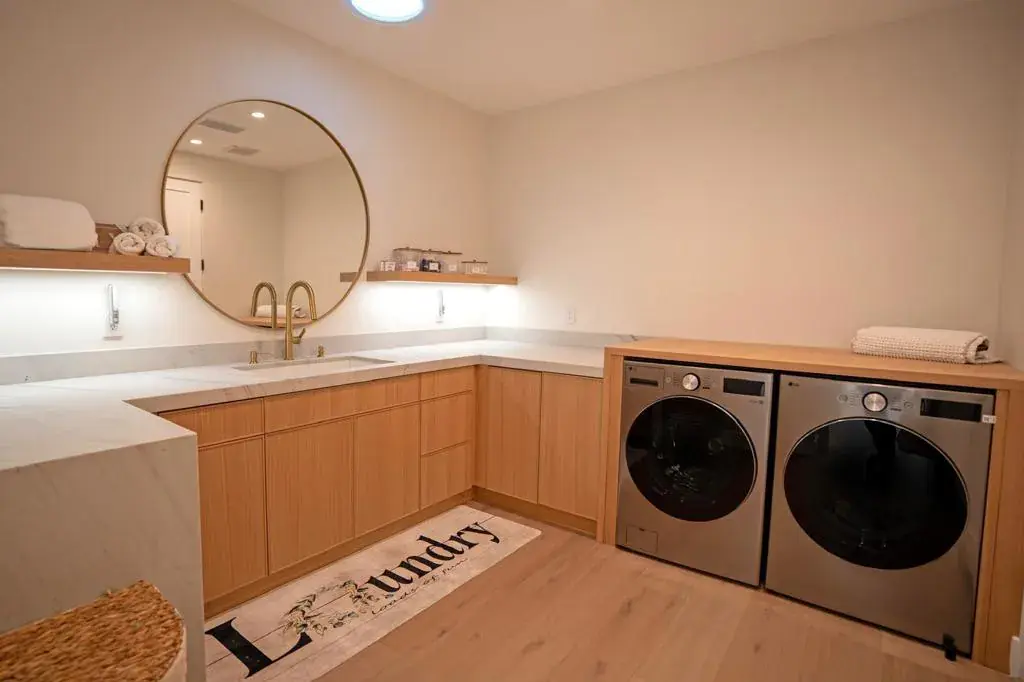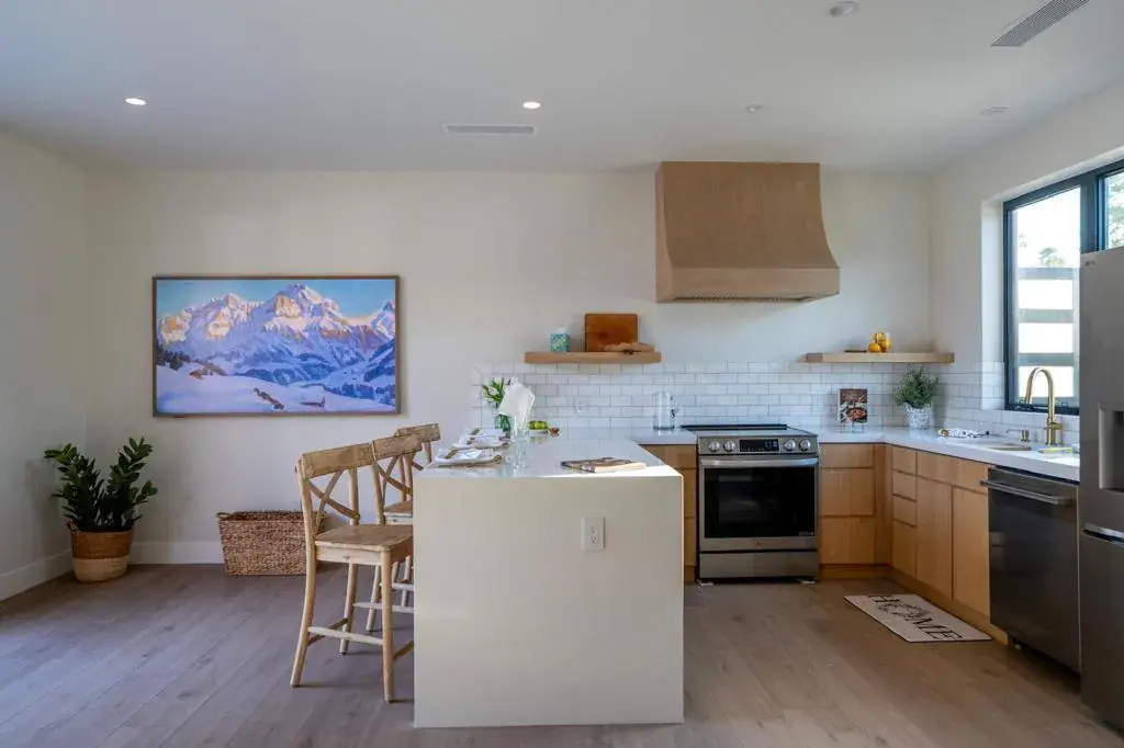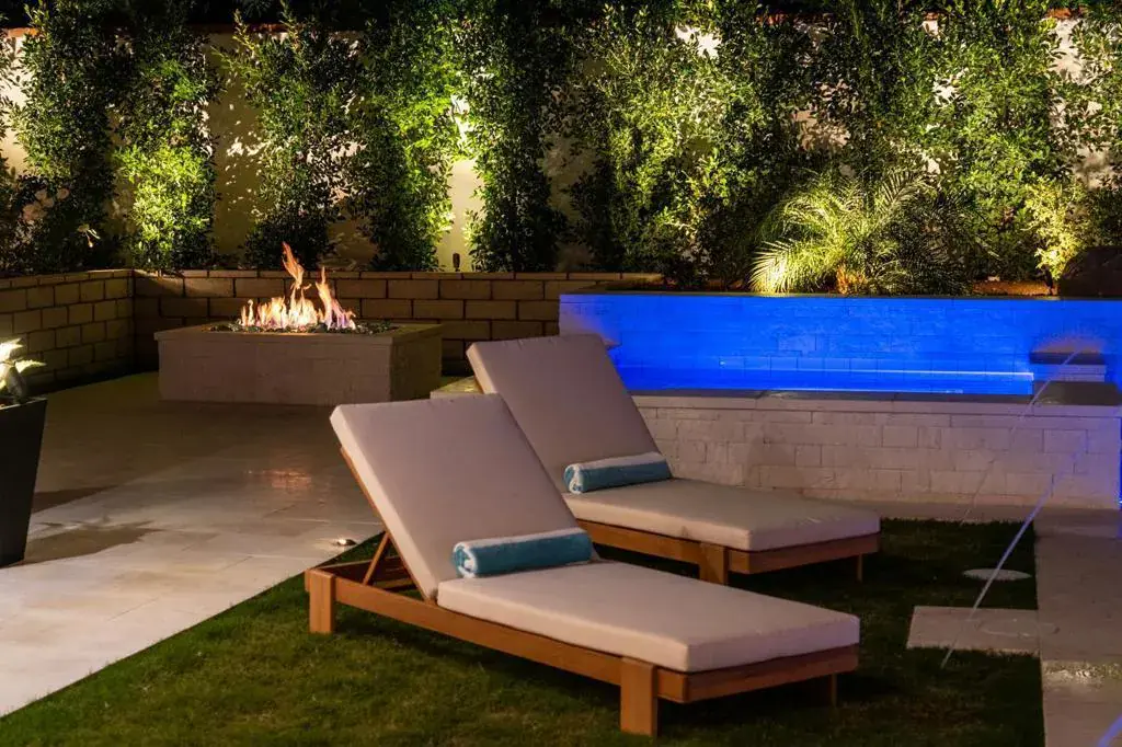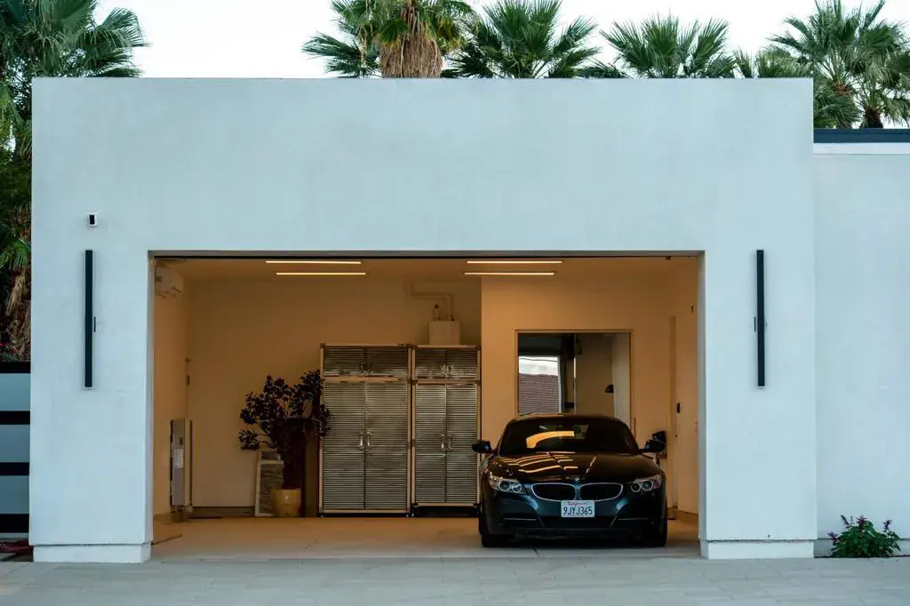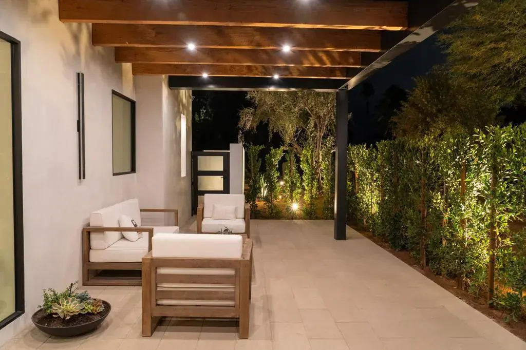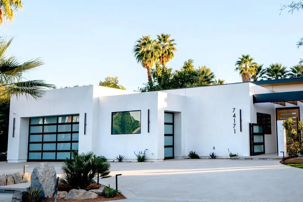 Villa Luce | Palm Desert — Newly completed Italian contemporary House of Light on a quiet corner lot walking distance to El Paseo and adjacent to the prestigious Vintage Club; Six bedrooms, six baths including fully equipped attached casita with kitchen and parking. Dramatic glass, winged canopy, and seamless indoor-outdoor entertaining. Oversized, extra-tall garage fits four vehicles in tandem, plus golf cart garage and gated guest/office entry. Overbuilt with solid urethane insulation, insulated interior walls, solar with Tesla Powerwalls, EV charging, independent HVAC zones, whole-house water filtration, and Navien tankless system. A rare caliber of construction in central Palm Desert.