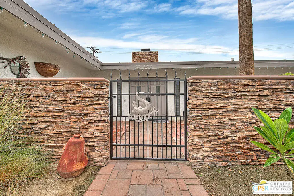 Welcome to your desert oasis, located just a leisurely 3-block stroll from the world-famous El Paseo, with its upscale dining, art galleries, shops, and year-round events. This updated home is an entertainer’s dream that boasts 3 bedrooms, 2 baths, and a versatile room that can be used as an office, a den or a 4th bedroom. This home includes a stunning backyard with a sparkling pool, raised spa, two fire pits, and a built-in gas BBQ. The open-concept layout features vaulted ceilings in the living room and primary bedroom, complemented by a gas fireplace. The modern kitchen shines with sage gray refurbished cabinets, polished nickel pulls, granite countertops, stainless steel appliances, and recessed lighting with a dimmer switch. Five sliding glass doors offer seamless indoor-outdoor flow with gorgeous pool and backyard views. The primary suite indulges with a remodeled bath, dual sinks, a walk-in shower with bamboo rain glass and pebble tech flooring, plus a walk-in closet with built-ins. A private guest bedroom with French doors opens to a gated, tiled courtyard, ideal for morning coffee. Additional highlights include 20″ ceramic tile and plush carpet flooring, a remodeled guest bath, a private entry courtyard with terracotta pavers, and an attached 2-car garage with built-in cabinetry. Set on a 7,405 sq ft lot with privacy walls and three hand-hammered fountains, this beautifully maintained home is your ticket to sophisticated desert living.