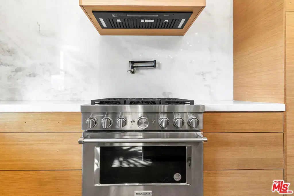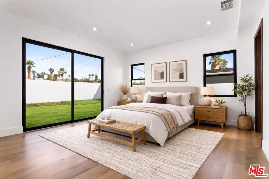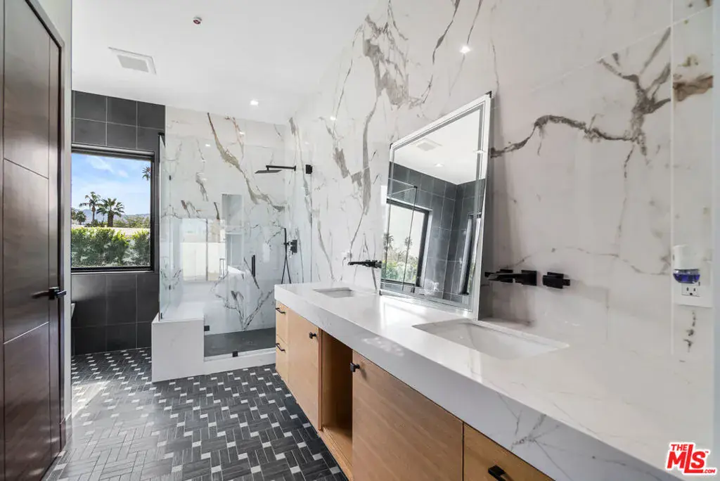 Set in the heart of Palm Desert, this striking newly constructed contemporary residence offers the perfect balance of refined design, modern comfort, and resort-style living. Privately gated and thoughtfully designed, this 4-bedroom, 3-bathroom home invites you to enjoy sweeping views, a sense of privacy, and the kind of seamless indoor-outdoor lifestyle the desert is known for.From the moment you enter through the dramatic 10-foot double doors, you’re welcomed into a bright, open interior designed for both everyday living and elevated entertaining. Engineered hardwood flooring, custom interior doors, a sleek smart electric fireplace, and curated black and gold fixtures and hardware create a clean, sophisticated aesthetic throughout.At the center of the home, the open-concept kitchen is made to gather in whether you’re hosting friends for cocktails or enjoying a quiet morning at home. It features custom cabinetry, quartz countertops, a dramatic waterfall island, pot filler, premium KitchenAid stainless steel appliances, and a stylish bar area with wine refrigerator.The layout includes three secondary bedrooms plus a spacious primary suite with a walk-in closet and a spa-inspired ensuite bath featuring dual sinks, a soaking tub, and a walk-in shower overlooking the lush yard. Additional bathrooms showcase striking stone and porcelain finishes and smart toilets, blending design with modern convenience.Outside, the home truly shines as a private desert retreat. Enjoy a heated pool and jacuzzi, with space to relax, unwind, and entertain with ease. Whether it’s a weekend gathering, sunset dinner, or poolside afternoon, this home is designed to make hosting feel effortless.Additional highlights include smooth Santa Barbara-style stucco, new copper plumbing, new gas line, new electrical, new sewer, central air and heating, and a 2-car garage with deep epoxy flooring and an aluminum glass garage door.Ideally located in central Palm Desert, this home offers convenient access to the area’s top dining, shopping, golf, entertainment, and everyday amenities placing you close to everything while still enjoying a private, polished retreat.