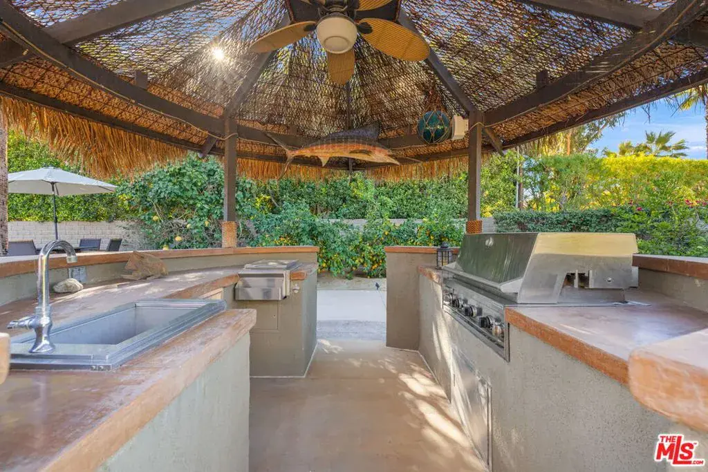 Rare find available for the entire Winter Season Jan 2026 to April 2026! Just five blocks from El Paseo, this stylishly furnished and freshly remodeled 3-bed, 2-bath home offers over 1,800 sq. ft. of open living space, with so much room for entertainment! A circular driveway leads to a welcoming front courtyard with fireplace and lounge seating. Inside, the light-filled open floor plan features a chef’s kitchen with large island, high-end stainless steel appliances, wine fridge, and abundant cabinetry. Step outside to your private desert oasis surrounded by lush tropical landscaping and Santa Rosa Mountain views… the oversized pool with raised spa and waterfall is ideal for relaxing or entertaining, complemented by a Tiki-bar outdoor kitchen, built-in BBQ, cozy fire-pit lounge, covered hammock area, and outdoor shower. Additional highlights include a paid solar system and attached two-car garage. Ideally situated in the sought-after El Paseo neighborhood, minutes from world-class golf, fine dining, and boutique shopping. What a fun way to spend the winter. Listed price is for 12 month lease. Shorter stays available – prices vary by month/season. Please contact LA1 for pricing.