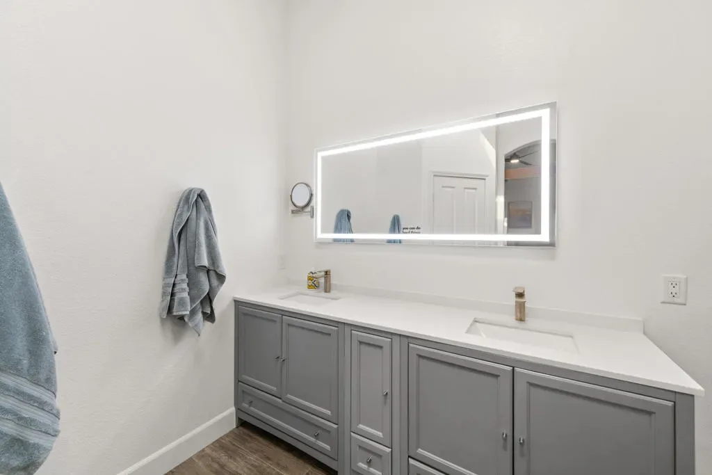 Step into this upgraded Islands 3 model that has been remodeled with a comfortable but chic feel. Experience the joy of living at a resort.The kitchen offers a beachy style. The soapstone counters are exquisite and durable. Double ovens to cook everything. A designed backsplash under the counter and on the wall adds to the contemporary flair.A very convenient layout allowing each room an easy flow into the next.The 20” tile floors in the main areas are appealing to the eye and easy cleanup. All of the windows and sliders are upgraded. The home is bright with a fantastic view. The patio provides privacy and showcases the water, mountains, fountain, and palm trees. One of the best views on this third hole of the golf course. Peaceful and enjoyable watching the golfers play in tournaments or just for fun. A perfect spot to soak it all in.The hanging light fixtures throughout are hand chosen and stunning. The primary suite has a fully remodeled hotel like bathroom. Dual vanities and elegant upgraded mirror. Contemporary and classic.A beautiful barn door separates the two areas. A walk in closet. Again, natural light throughout.The expanded 2nd bedroom is an added luxury. Very rare in this model. There are two windows and one faces the street. Such an extra feature.Beautifully done and offers many additional possibilities. The third bedroom can remain as that or create a den or other space with the full closet as an extra plus for storage. The convenience of the inside laundry area is very appealing, especially on a hot day! A great all around home in the Oasis Country Club. There are gathering areas spaced throughout the club. There are pools galore, spas, golf (many different golf packages offered for every level of golf),mini 18 hole putting green, tennis, dog park, pickle ball, and clubs and entertainment all year long. The grill, lounge and dining room have menus to please everyone. Breakfast, lunch, dinner and happy hour are attractive dining options for any day. The fun never ends! A true lifestyle to dream about…..