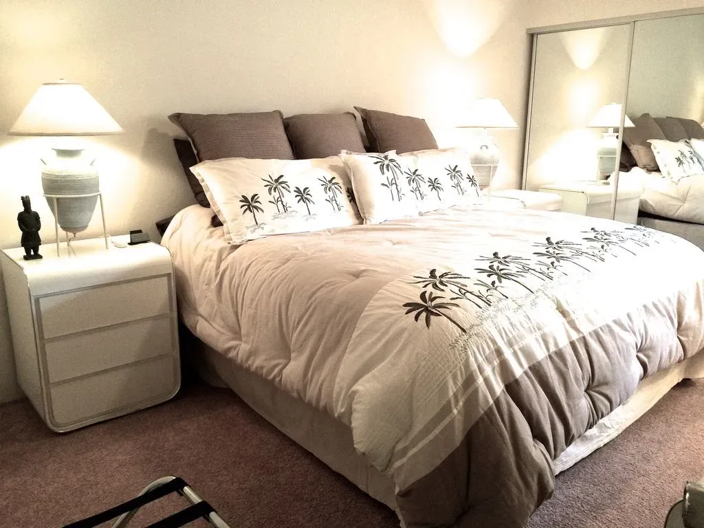 California King Bed, many drawers, spacious mirrored closets, designer Casablanca ceiling fan with light & dimmer control + Smart TV