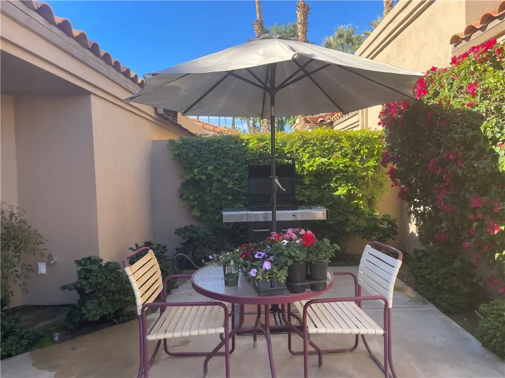2 Patios: Fairway and Enclosed w Furniture,table and chairs, chaise loungers, BBQ (auto) and large umbrellas for the sun.