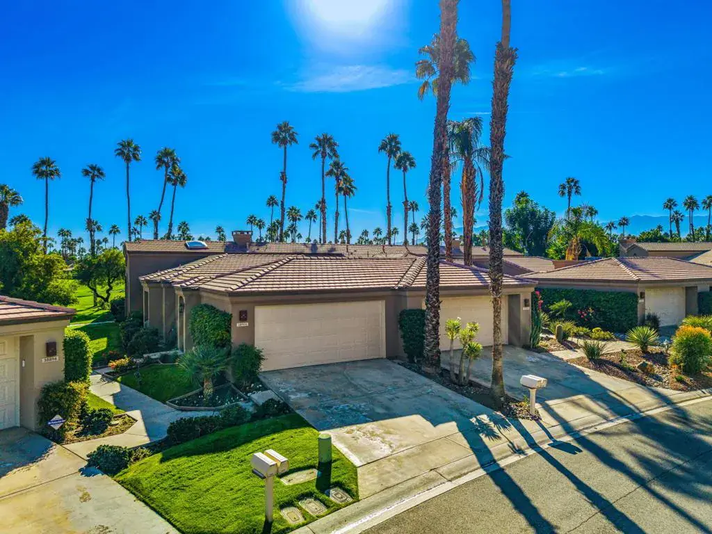 Looking for a place that feels like home but has all the perks of a resort? Welcome to 38900 Lobelia – a cheerful, fully furnished 3-bedroom, 2-bath home waiting for you in Palm Valley Country Club! Enjoy spectacular views overlooking the first fairway, great indoor and outdoor spaces and a pool/spa just footsteps away. This single level, end unit home is ideally located on a cul-de-sac and close to the clubhouse. The large living room has a gas fireplace, wet bar, and built-in shelves to customize your unique style. The Kitchen and Dining areas provide a designated ambiance for functionality and entertaining. The primary suite has vaulted ceiling, two closets, an en-suite bathroom with dual vanities and a private lounge area for relaxing. The two guest bedrooms offer comfort and a room to rest. This home has multiple skylights and a newer washer and dryer in the separate laundry room. The two-car detached garage is accessed from the front courtyard. Palm Valley Country Club is known for being a friendly and fun private resort communities. There are 2 Ted Robinson-designed golf courses, a 100,000 sq. ft. clubhouse with restaurants and bar that fosters a vibrate social environment. Amenities include an active fitness center, spa, tennis and pickleball courts, 46 community pools/spas, an Olympic size lap pool. In addition, there is 24-hour guard-gated security and patrol.Here’s your opportunity to own a seasonal retreat, full-time residence, or investment opportunity. This community offer more than an active and leisure lifestyle; Palm Valley Country Club has possibilities for short-term rental income.