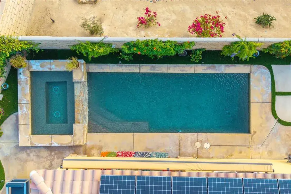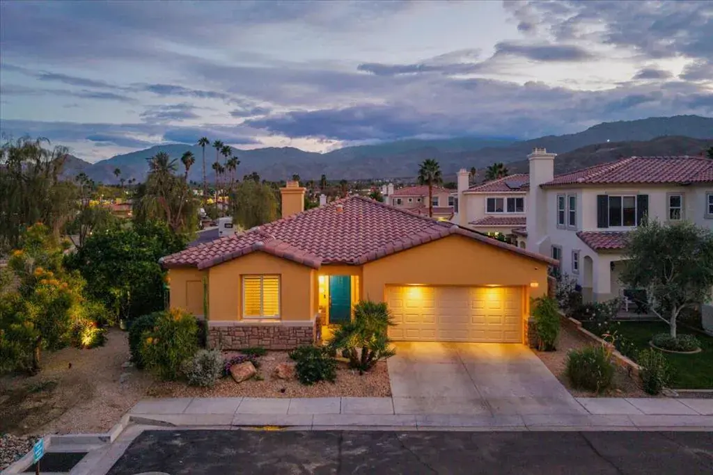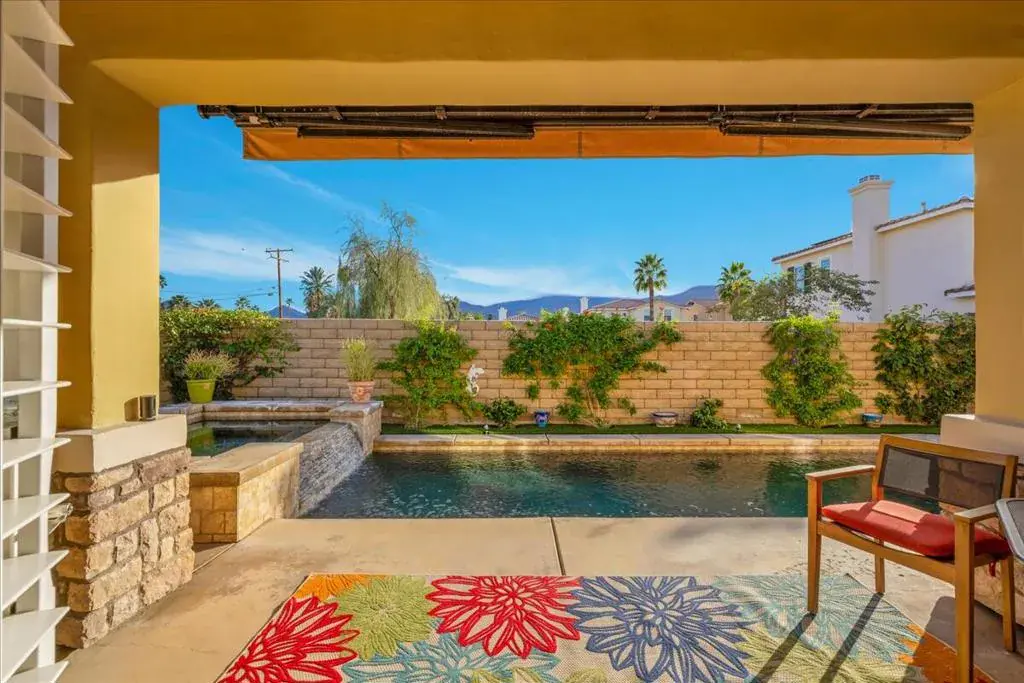 Discover an exceptional, move in ready, newer, single level– showplace near El Paseo! Your own private enclave behind the gates of Paseo Vista community with low HOAs. *Owned solar system!* Picturesque mountain views with ultimate privacy at the end of a cul-de-sac with only one adjacent neighbor. Open, spacious floor plan with high ceilings, bright & contemporary. THREE bedrooms, three baths. Luxurious pool & spa with motorized shade cover, fire-pit, BBQ area–privacy walls backing to open space, & desert plantings add to the outdoor appeal. Gourmet kitchen with stainless appliances, tons of countertop & cabinetry space. Oversized floor tile. Split bedroom plan with privacy for all. Primary suite with spa-like bath. Enjoy the gorgeous interior, lounge poolside, entertain, stargaze–this is the IDEAL close-to-town property to call HOME! 2-car attached garage with additional storage. Centrally located, mere minutes from all the attractions: College of the Desert, hiking trails, CV link, casinos, shopping and dining along El Paseo. Paseo Vista, a compact community of 64 homes, features a community pool and spa, and low HOAs of $196 per month.
