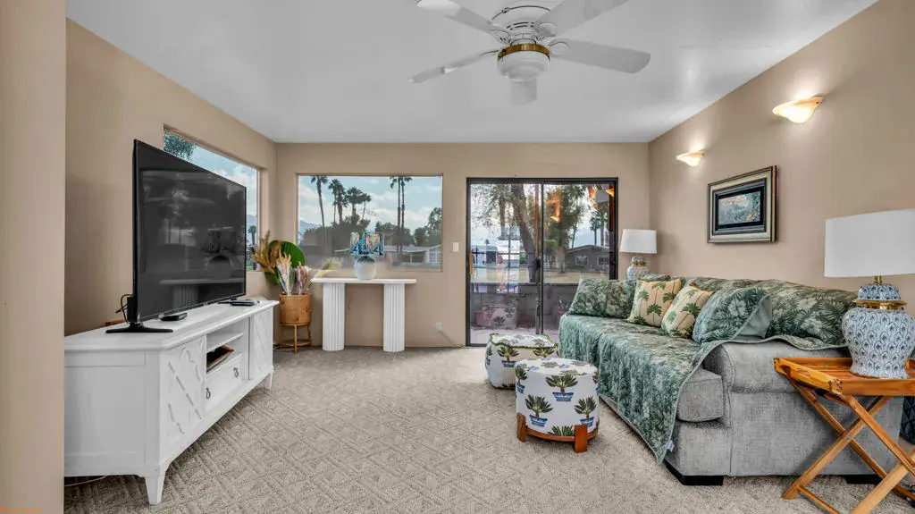 Fantastic Opportunity in Portola Country Club!This exceptionally spacious 2,007 sq. ft. home situated on a 433A permanent foundation, this home is financeable with FHA and VA loans, offering flexibility and peace of mind for buyers. Home offers a rare combination of golf course and lake views plus a private covered courtyard at the heart of the property–perfect for morning coffee or evening relaxation. The open-concept floor plan features a formal dining area and a bright living room with a cozy fireplace and dual outdoor access. The third bedroom has been converted into a den, ideal for a home office, guest space, or media room. The primary suite includes a walk-in closet and a large en suite bath with a soaking tub and separate shower. Additional highlights include dual-pane windows throughout and a 2-car garage with extra space for storage or even a golf cart.While this home may need a little TLC, it’s brimming with potential–an opportunity to make it truly your own in one of Palm Desert’s most desirable 55+ communities.Located in the heart of Palm Desert, Portola Country Club is a gated, active adult community known for its beautifully maintained grounds, friendly atmosphere, and unbeatable amenities. Enjoy unlimited golf on the private 18-hole par-3 course, plus access to three pools and spas, pickleball, tennis, and bocce ball courts, a fitness center, and a well-equipped clubhouse hosting a wide range of social activities and events. With low HOA fees that include golf, cable, Wi-Fi, and trash, and you own the land, this community offers exceptional value and lifestyle.Come experience Portola Country Club–where every day feels like a resort getaway and your next chapter awaits!