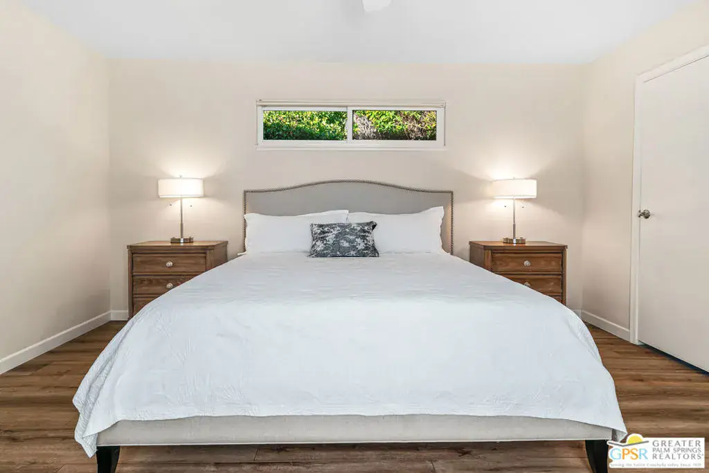 Gated Community where GOLF is included in your HOA! You own the LAND! Fabulous custom-built home with prime location, curb appeal, and breathtaking Santa Rosa, San Jacintos mountains and golf-course views! This beautifully crafted single-family home offers 1,740 sq. ft., featuring 2 bedrooms, 2 beautifully updated and spacious bathrooms, and a 2-car garage with direct access to the home. Inside, you’ll find a gourmet kitchen with custom cabinetry, soft-close drawers, a spacious island perfect for entertaining, and stainless steel appliances. The open layout creates an easy flow for everyday living and hosting. One of the home’s standout features is the expansive patio, an ideal place to unwind in the afternoon as you enjoy sunset views over the golf course, fountains, and the dramatic Santa Rosa mountains.. a truly serene setting. Located in the gated 55+ community of Portola Country Club, where you own the land, residents enjoy low HOA fees that include access to an 18-hole 3 Par golf course, three pools and spas, clubhouse, tennis, pickleball, bocce ball, dog park and a full calendar of activities. Close to El Paseo shopping, top restaurants, and the McCallum Theatre, this home offers both comfort and convenience. Leased solar provides added energy efficiency.