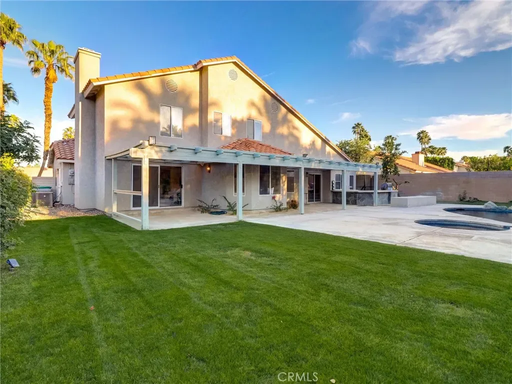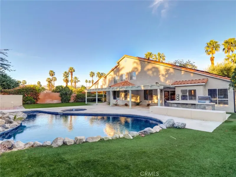 Step outside to a large private backyard designed for enjoying the desert lifestyle. The spacious yard features a refreshing pool and plenty of room for lounging, entertaining, or creating your own outdoor oasis. Whether hosting gatherings or enjoying a quiet evening under the desert sky, this backyard offers the perfect setting.