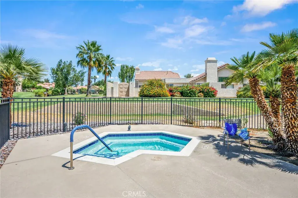 Premier Corner Lot in Guard-Gated Silver Sands! This is a rare opportunity to own one of the most desirable lots in the prestigious Silver Sands community. This beautifully upgraded single-level G-plan home sits on a premium corner lot, offering one of the few private yards in the development with unparalleled mountain views and direct access to two pools and spas just steps away. Featuring two spacious en-suite primary bedrooms, this highly sought-after floor plan boasts soaring ceilings and a completely open layout filled with natural light. The interiors have been tastefully reimagined with contemporary flair, including wood-look tile flooring, fresh bright paint, and stylish metallic tile accents. The chef’s kitchen is open to the living and dining areas and showcases modern walnut-toned cabinetry, white quartz countertops, custom backsplash, stainless steel appliances, and a raised breakfast bar. The great room is surrounded by windows and anchored by a cozy fireplace—perfect for cool desert evenings. Both primary suites offer upgraded bathrooms with quartz counters, walk-in showers with wood-look tile surrounds, and generous walk-in closets. What truly sets this home apart is the expansive private yard—a rare find in Silver Sands. Ideal for entertaining or relaxing, it features: Multiple patio areas for al fresco dining, Built-in BBQ with bar seating, Fire feature for ambiance, A putting green for added fun, Direct gated access to two nearby pools and spas. This fully furnished move-in-ready gem combines luxury, privacy, and unbeatable location within one of the desert’s most coveted guard-gated communities. The SILVER SANDS RACQUET CLUB is a gated community with 256 homes…located adjacent to the J.W. Marriott Desert Springs Resort and across from Desert Willow Golf Resort where Palm Desert homeowners can play for reduced rates. The complex features club house for social activities, 7 lighted tennis courts, 4 pickleball courts, tennis and pickleball pros on staff in season: fitness center and 15 pools/spas which are all included in the HOA dues. HOA dues also include roof, exterior maintenance, cable TV, internet, tennis, pickleball, trash removal and security. Silver Sands Racquet Club has everything to make everyday a vacation!