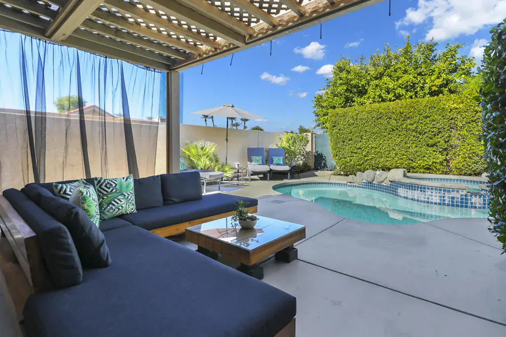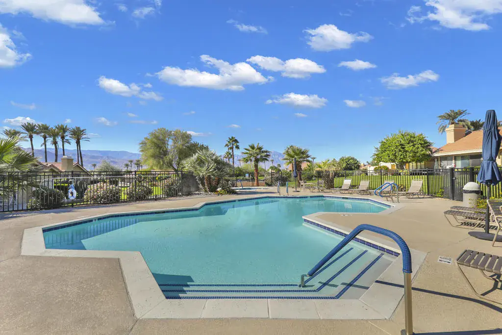 The only Condo in Silver Sands RC with a private pool, spa and putting green! Welcome to ”21 PARADISE”, a stunning desert retreat nestled in the highly sought-after Silver Sands Racquet Club in the heart of Palm Desert. Ideally situated in the middle of the community, this beautifully maintained residence offers the perfect blend of comfort, privacy, and resort-style living. Soaring ceilings and abundant natural light with an open area on one side and a wraparound patio create an airy, open feel throughout the home, while the well-designed floor plan is ideal for both full-time living or seasonal escapes. Step outside to enjoy your own private pool and spa with sparkling new tile or choose to use one of the many community pools/spas for relaxation and socialization. There are lush greenbelts just steps from your door that meander throughout the community. Silver Sands is a private gated community known for its vibrant tennis and pickle ball culture with an overall lively social lifestyle, featuring a clubhouse, fitness center, and numerous community events. Located just minutes from world-class shopping and dining on El Paseo, renowned golf courses, and endless outdoor recreation. Next door to that are restaurants, grocery stores, pharmacy, coffee shop, dry cleaning and more. Right next-door is the JW Marriott Desert Springs Resort while across the street is one of the most beautiful public golf courses in the valley, Desert Willow. Whether you’re seeking a primary residence, vacation getaway, or investment opportunity, 21 Ensenada Lane delivers the ultimate desert lifestyle!
