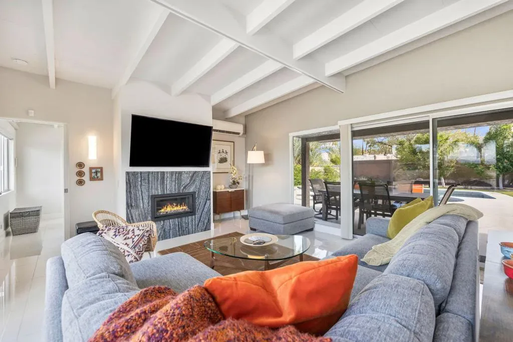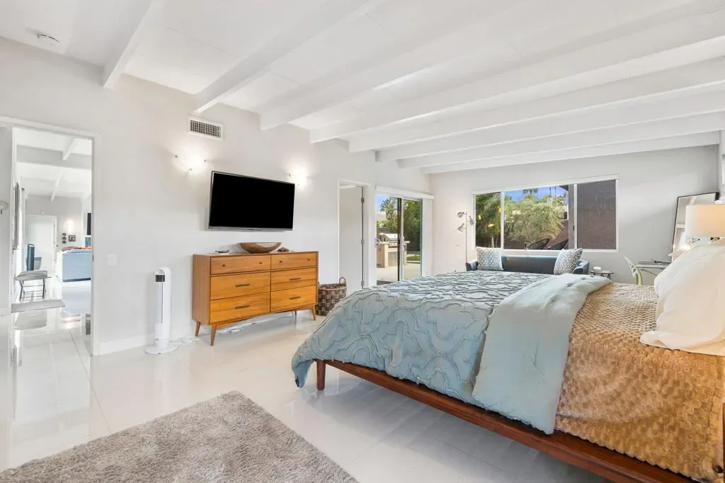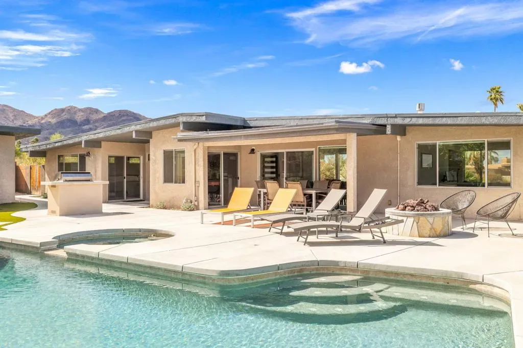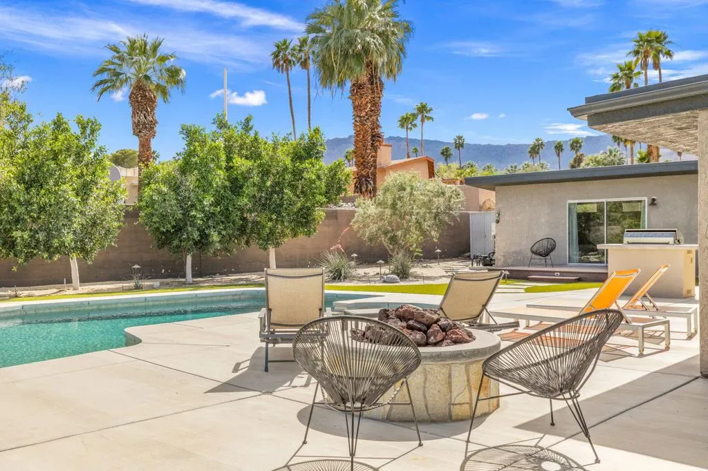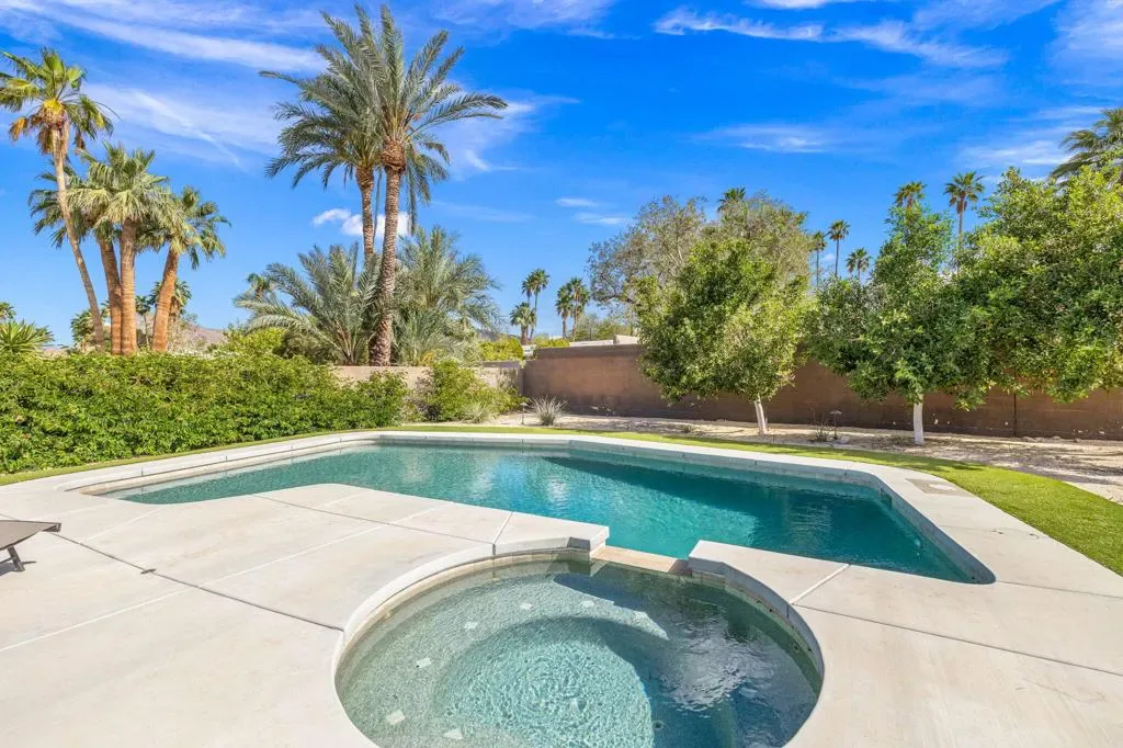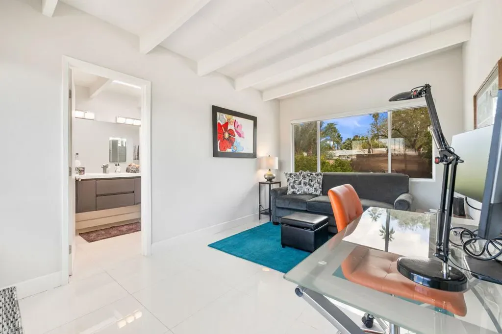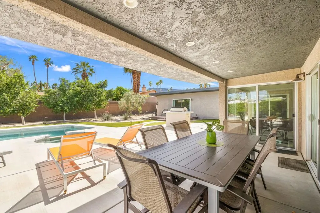 Available May-Sept 2026 at $4500/month, Oct-Nov 2026 at $6500/month, March-April 2027 at $9000/month. Now available for lease in the coveted Silver Spur Ranch neighborhood of South Palm Desert – where comfort, style, and location come together effortlessly. Tucked away at the end of a peaceful cul-de-sac and bordering Ironwood Park, this South-facing home offers a rare sense of privacy with beautiful open surroundings. The exterior sets a warm, inviting tone with natural redwood accents, a circular driveway, and updated Milgard windows and doors, all framed by mature palms and desert landscaping. Inside, the home has been thoughtfully refreshed with a clean, contemporary aesthetic that complements its Mid-Century roots. The primary suite features a king bed and the guest bedroom doubles as a flexible office space and includes a brand-new queen-size sofa bed perfect for visitors or working from home. A detached casita provides additional space with king size bed and ensuite bath ideal for visiting guests, extended family, or a quiet retreat. The backyard is designed for both relaxation and entertaining, featuring a saltwater pool and spa, built-in BBQ, and fire pit all set against a serene, private backdrop. The kitchen blends functionality and style with an island bar, breakfast nook, Thermador range, and Maytag refrigerator, while a solar system helps keep energy use efficient. Silver Spur Ranch is known for its character and charm, with a rich architectural history and stunning mountain views. This prime South Palm Desert location places you just minutes from El Paseo’s shops and restaurants, The Living Desert, top golf courses, and nearby hiking trails. Available for lease enjoy a beautifully furnished home in one of the desert’s most desirable neighborhoods.