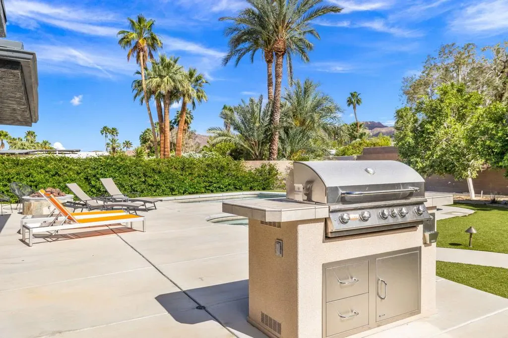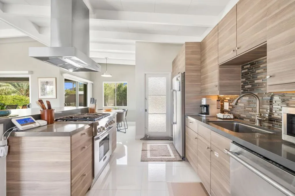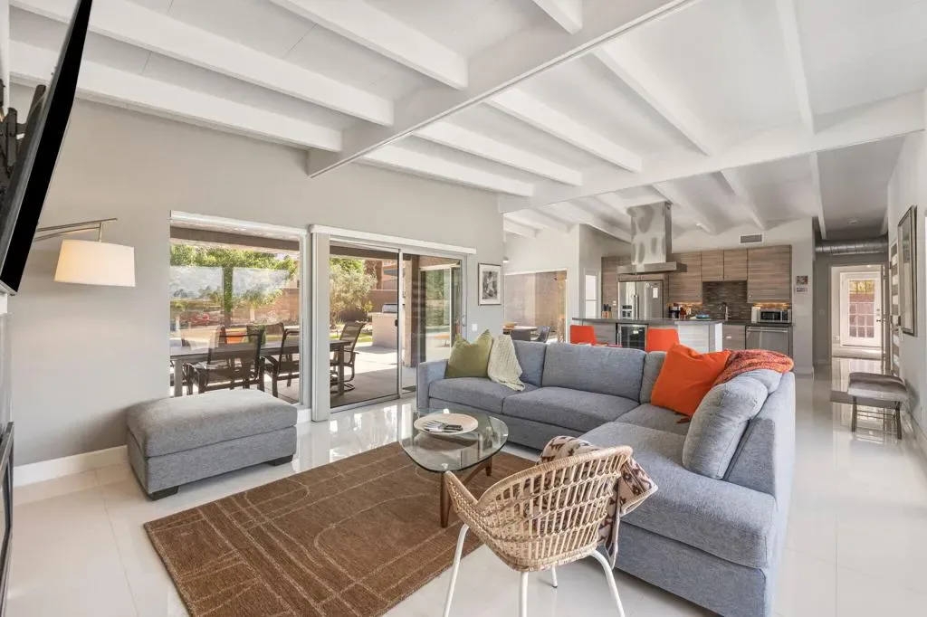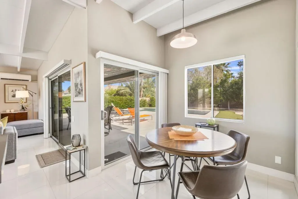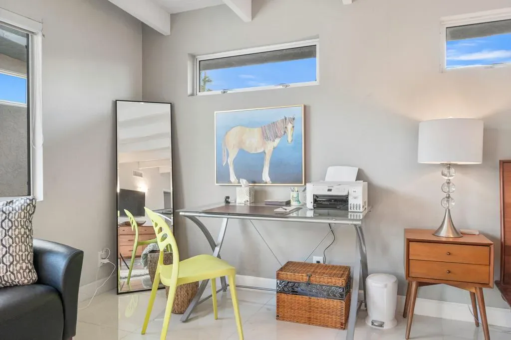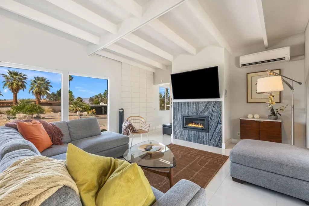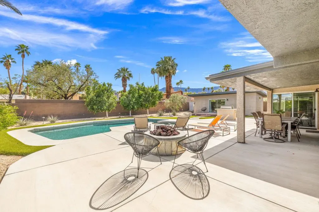 Available May-Sept 2026 at $4500/month, Oct-Nov 2026 at $6500/month, March-April 2027 at $9000/month. Now available for lease in the coveted Silver Spur Ranch neighborhood of South Palm Desert – where comfort, style, and location come together effortlessly. Tucked away at the end of a peaceful cul-de-sac and bordering Ironwood Park, this South-facing home offers a rare sense of privacy with beautiful open surroundings. The exterior sets a warm, inviting tone with natural redwood accents, a circular driveway, and updated Milgard windows and doors, all framed by mature palms and desert landscaping. Inside, the home has been thoughtfully refreshed with a clean, contemporary aesthetic that complements its Mid-Century roots. The primary suite features a king bed and the guest bedroom doubles as a flexible office space and includes a brand-new queen-size sofa bed perfect for visitors or working from home. A detached casita provides additional space with king size bed and ensuite bath ideal for visiting guests, extended family, or a quiet retreat. The backyard is designed for both relaxation and entertaining, featuring a saltwater pool and spa, built-in BBQ, and fire pit all set against a serene, private backdrop. The kitchen blends functionality and style with an island bar, breakfast nook, Thermador range, and Maytag refrigerator, while a solar system helps keep energy use efficient. Silver Spur Ranch is known for its character and charm, with a rich architectural history and stunning mountain views. This prime South Palm Desert location places you just minutes from El Paseo’s shops and restaurants, The Living Desert, top golf courses, and nearby hiking trails. Available for lease enjoy a beautifully furnished home in one of the desert’s most desirable neighborhoods.