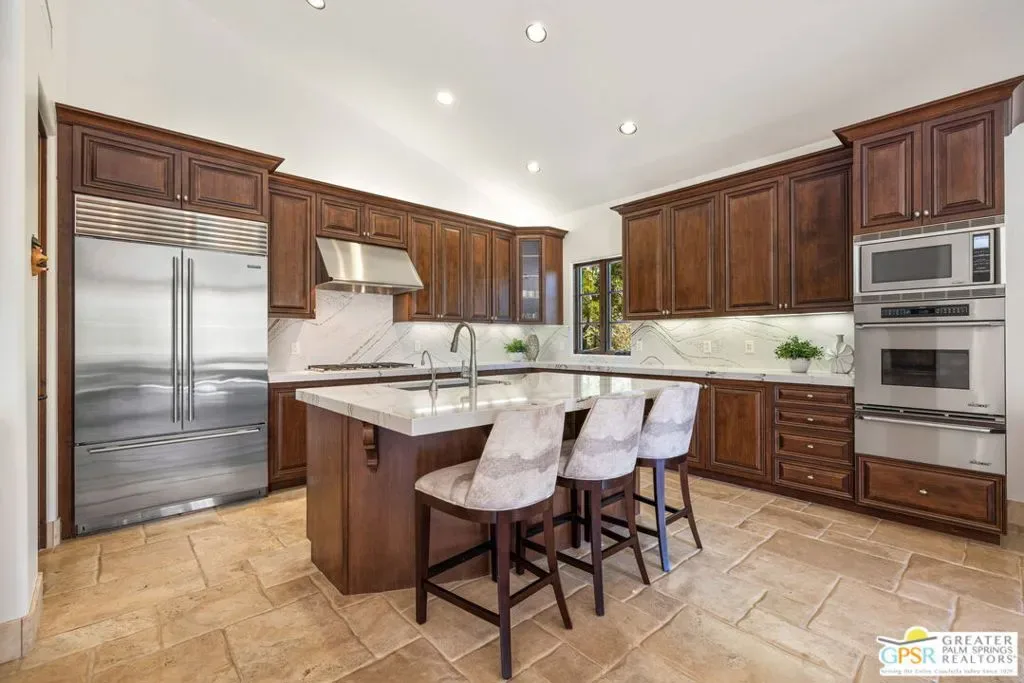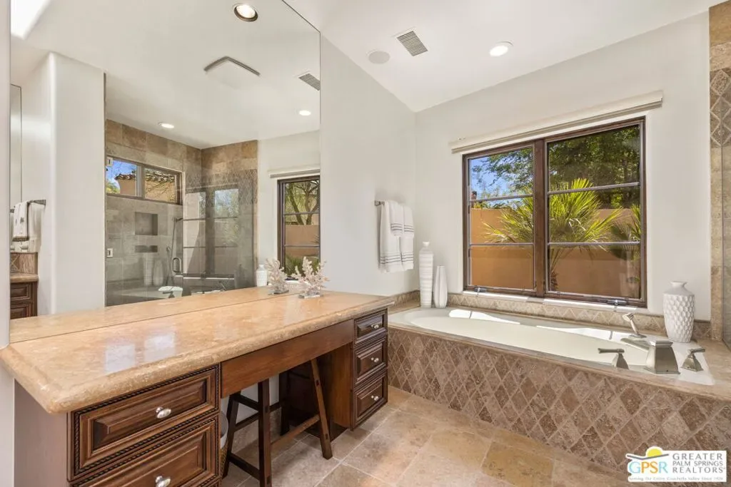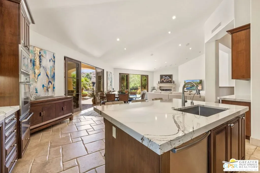 Perfectly positioned on an oversized south-facing lakefront lot at Stone Eagle Golf Club, this beautifully designed 3 bedroom + optional 4th bedroom residence captures panoramic water and mountain views in a setting defined by privacy and elegance. Located within one of South Palm Desert’s most exclusive guard-gated communities, the home offers a seamless blend of indooroutdoor living and refined desert lifestyle. A private front courtyard welcomes you into a formal entry that opens to a light-filled great room with vaulted ceilings, floor-to-ceiling windows, and expansive sliding doors that frame the lake and mountains beyond. The living spaces flow effortlessly to the outdoors, where a pool, separate spa, and covered cabana create a true resort-style experience overlooking the water. The expansive kitchen is designed for both everyday living and entertaining, featuring granite countertops, a large island, walk-in pantry, and built-in wine refrigeration, all connected to formal dining and living areas with direct access to the patio. The Primary Suite offers a private retreat with fireplace, sweeping views, outdoor access, a generous walk-in closet, and a spa-like bath with split vanities, soaking tub, and walk-in shower. An adjacent media room with nearby bath provides flexibility as a fourth bedroom or guest space. On the opposite side of the home, Junior Ensuites Two and Three each enjoy views, patio access, and private baths. Additional features include an inside laundry room and attached two-car plus golf cart garage. Stone Eagle is known for its elevated lifestyle, offering a secluded setting surrounded by lakes, streams, and waterfallsyet just minutes from El Paseo’s renowned shopping, dining, and entertainment. A rare opportunity to own a south-facing lakefront home with scale, views, and exceptional indooroutdoor living in one of the desert’s most coveted communities.