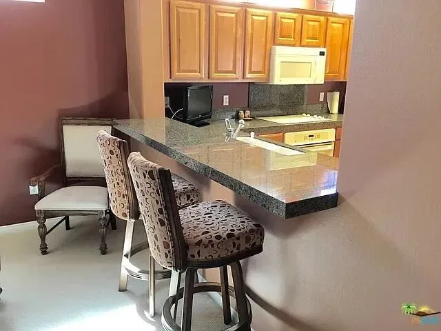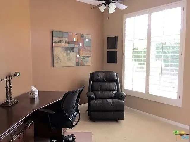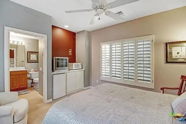 Reserved for 11/15/26 thru 04/14/2027. 3 bedrooms, 3 full bathrooms plus convertible den. Fully furnished Morocco Great Room Plan with Detached Casita and Extended Garage. Spacious kitchen with granite counters, center island, breakfast bar and eating area. The great room and entertainment center open to kitchen, bar area, dining and den. Den and main room open onto patio with BBQ and yard. Double door entry into master suite with sitting area, spacious bathroom with double sinks, oversized shower with seat and walk-in closet. Guest Bedroom is next to another full bathroom. Laundry room has washer and dryer. Ceiling fans in most every room. Across the courtyard is the Casita stocked with mini refrigerator, microwave, pantry, TV and has its own full bathroom with good sized closet.Included: 3 TV’s, basic cable, WiFi and phone package. Sun City Palm Desert is a Gated Community with 2 golf courses, driving range, putting courses, swimming pools, tennis, pickle ball, bocci ball, billiards, restaurants, card and game rooms, library, postal center, theater, dance and yoga building, computer center, over 70 clubs and lots, lots more! Come partake in the fun or just chill out! Don’t forget your toothbrush.Seasonal Rates:$5,300.00 per month – November thru April.5 month minimum termUtilities are covered by owner up to $350.00 per month for Seasonal Rates.