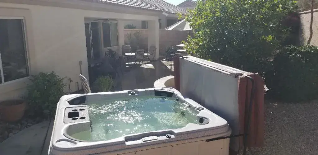 Sun City Del Webb St Croix model . One of the newer homes in Sun City , one of the last phases to be built , located near the rear clubhouse with gym & pool , choice location with a private backyard without a home right behind you . Features include ; pool table , piano , above ground spa , front and rear patios , barbeque island , granite counters , black and stainless appliances , large master with walk in closet and bath , three tv’s , solar , oversize 2 car garage with additional space for golf cart , exercise machine , breakfast bar , office / den . washer & dryer , fully furnished . inclds cable / wifi / electric / gas / gardener / water / hoa dues . 24 hour gate guarded 55 and over community offers 2 golf courses / pickleball / pools / gym / tennis / clubhouses / spas / driving range / restaurants .