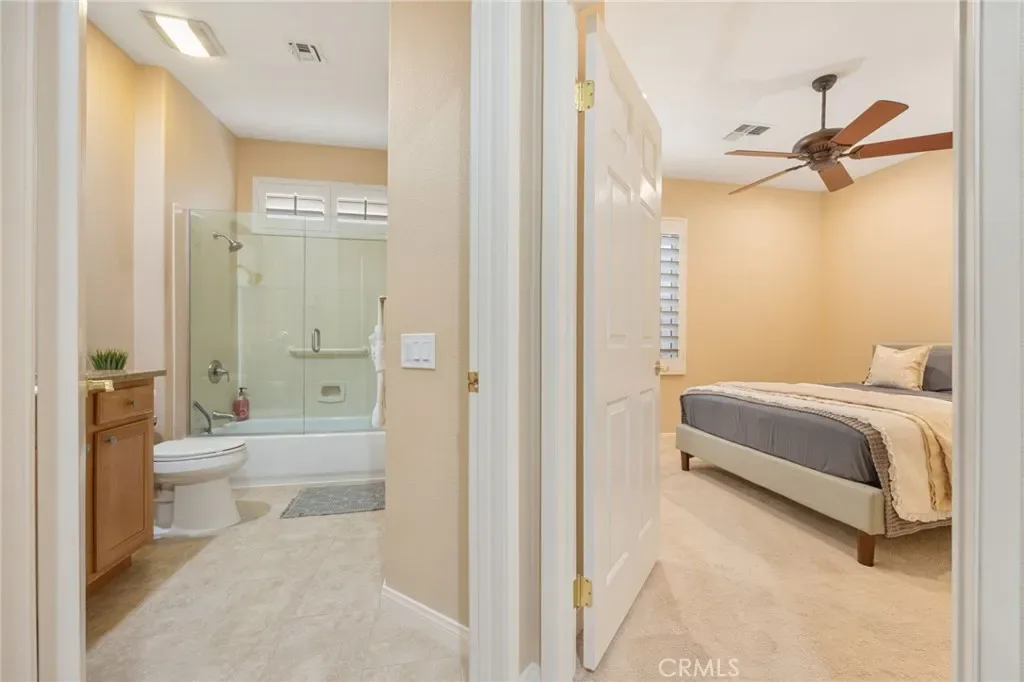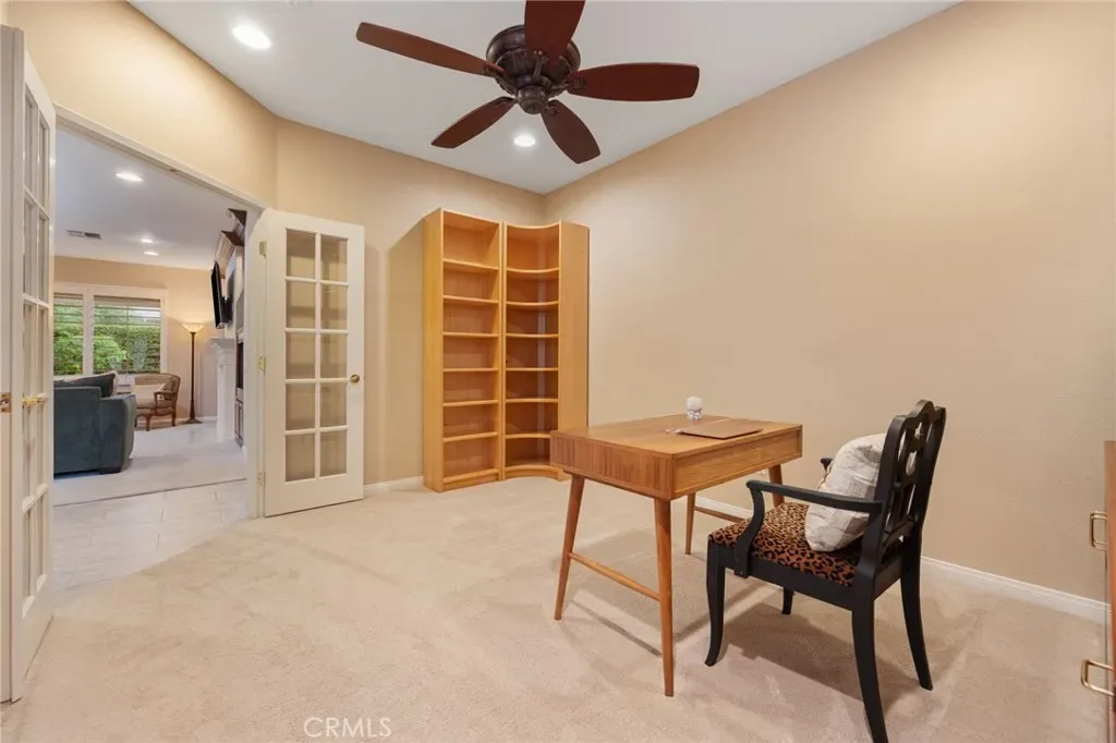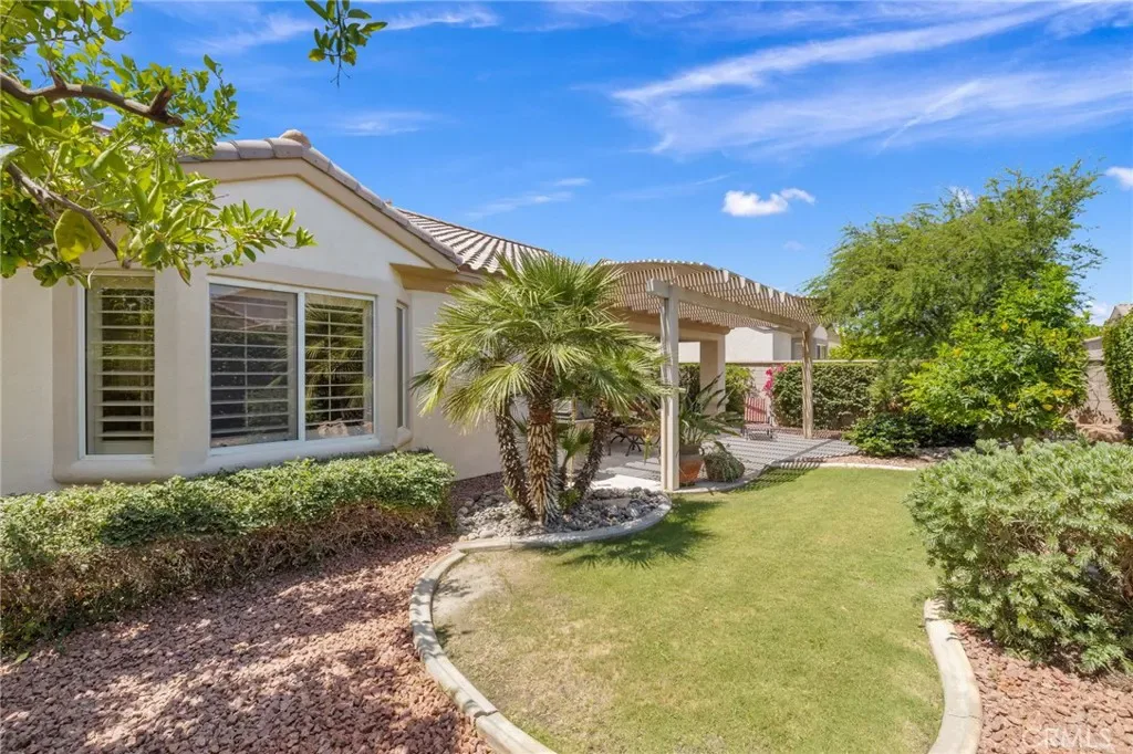 Located in the best 55+ community in the valley, Sun City Palm Desert, this property has 2 bedrooms, 2 bathrooms and a den with an extra ”flex” room that can be used for hobbies, an extra guest room. The open concept of this home makes it super desirable. The kitchen is upgraded with slab granite, stainless appliances, original upgraded cabinets with hardware. custom backsplash, and is open to the dining room and living room with views out to the fabulous north facing backyard. The living room has a cozy fireplace. The master bedroom has a bay window viewing the backyard, and the bathroom has a walk-in shower, soaking tub, walk-in closet, and some nice upgrades. The guest bedroom is inviting and is adjacent to the full 2nd bathroom. The laundry room has a sink, cabinets, and includes the washer and dryer. The backyard is beautiful, with real grass, lush landscaping, fruit trees, and it is very private.