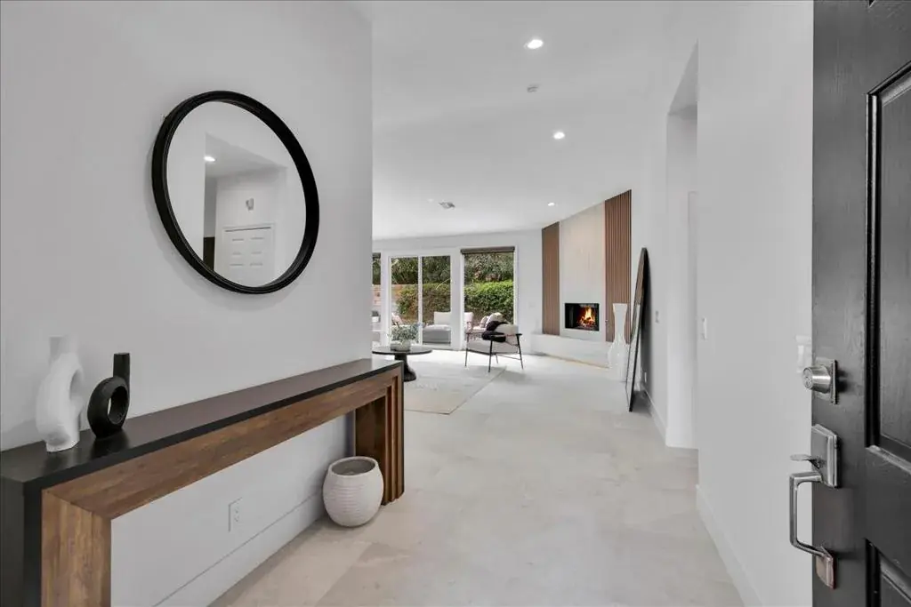 Wow Factor with this incredibly reimagined residence in the heart of Palm Desert! Ideally situated on a quiet cul-de-sac within the highly desirable and charming community of The Grove this home offers a peaceful setting with an unbeatable central location – just minutes from top-rated Abraham Lincoln Elementary, Palm Desert Charter Middle, Palm Desert High, College of the Desert, and Sacred Heart Church schools, El Paseo shopping and dining, grocery stores, coffee shops, and The Shops at Palm Desert mall. This 2,078 sq ft, 4-bedroom, 2-bath home has been completely remodeled and brought to its glory with new cabinets, counters, flooring, baths, appliances, updated pool area and the list goes on…This redesigned open great-room concept that seamlessly connects the kitchen, living, and dining areas. Vaulted ceilings, new large tile flooring throughout, custom lighting, and expansive new patio doors create a modern yet warm and inviting atmosphere. A newly added den/fourth bedroom partial garage conversion adding almost another 200 SqFt of living space enhances the flexible and spacious layout. The home features two fireplaces, including a striking double-sided fireplace in the primary suite, offering comfort and character. Spa-inspired bathrooms showcase stylish tile finishes, while the primary bedroom enjoys tranquil backyard views. Step outside to your own private desert retreat – perfect for entertaining or relaxing. The hardscaped backyard features mature landscaping, firepit lounging area leading to a long pool ideal for both recreation and exercise. The wrap around patio sets the stage for memorable desert al fresco gatherings. Additional highlights include solar panels with transferable lease to maximize energy efficiency, along with an upgraded vehicle outlet in the garage. This move-in-ready home shows like a model and offers the perfect blend of comfort, style, and location. Homes of this quality rarely come available – schedule your private showing today and start living the Palm Desert lifestyle.