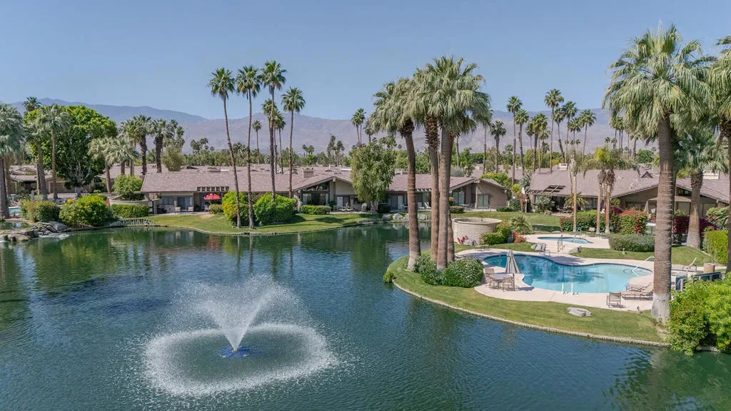 This stunning Laramie floor plan, which is one of the most popular in The Lakes Country Club. Facing south overlooking a lake with waterfalls and mountain views – all with privacy. 2 bedrooms/3.5 bathrooms, den (3rd bedroom) with en-suite, beautiful living room with volume ceilings and stunning fireplace. Newer AC unit and the home has been rarely used. This 2,184 square foot home is truly a jewel that offers a wonderful blend of comfort and style. The guest bedroom, with a stunning en-suite is spacious and private. The Primary bedroom, with large walk-in closet, beautiful en-suite tells you that you are truly living the desert lifestyle. The kitchen with views of the lake and patio is a chef’s delight and perfect for entertaining family, friends and guest. The dining room is adjacent for easy conversations with friends who love the be with the chef. The living room is stupendous with such high ceilings and the feeling of warmth with gorgeous views of the outdoor patio, lake and mountains – this is a gem and a true find of perfect blend of balance of leisure, luxury and convenience in one of the desert’s most sought after communities in the desert. Offered Furnished per seller inventory and comes with the golf cart. NwThe Lakes Country Club is truly a marvelous location with so much to take advantage of. Offering 27 holes of championship quality golf, 11 tennis courts, 9 pickleball courts, 4 paddle tennis courts, 44 pools/spa and one of the most amazing fitness work-out facilities in the desert. The clubhouse is magnificent, and the restaurants are the finest. This truly enchanting home is priced to sell with the furniture (as stated per seller inventory)and golf cart.Neither the listing agent nor brokerage guarantees the accuracy of square footage or details regarding the property’s condition or features as provided by the Seller. Buyers are strongly encouraged to conduct their own independent investigation and obtain professional inspections to verify all information. Buyer to pay one time Reserve Fee $12,618.