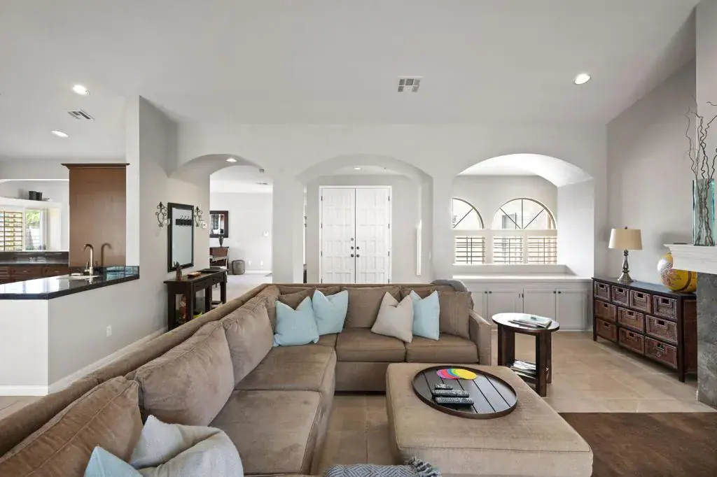 OPEN HOUSE SATURDAYJANUARY 31ST, 12:30-3Incredible mountain views surround this gated, single-level 4-bedroom, 3-bath, 2,686 SF pool home in South Palm Desert. Situated on a large, private lot with mature fruit trees, there is ample space to create a garden, putting green, or accommodate your golf cart lifestyle.Located in the gated community of Vista Paseo, this desirable enclave is just a few blocks from the world-renowned El Paseo Shopping & Dining District, as well as hiking trails, Whole Foods, the Palm Desert Farmers Market, and more.The expansive backyard is an entertainer’s dream, featuring a large pool and spa with waterfalls, generous patio areas, and breathtaking mountain views with glorious sunset skies. A spacious private side yard offers endless possibilities–add a seating area, firepit, or create your own tranquil retreat.This private and quiet oasis welcomes you through a gated courtyard and double entry doors. Inside, the home is filled with light and seamless indoor-outdoor flow, thanks to multiple sliding glass doors throughout the entire home providing access to the courtyard, pool, spa, and patios.The remodeled primary suite includes a sitting area and a large walk-in closet. Two oversized Jack-and-Jill bedrooms are ideal for guests or family and can comfortably accommodate multiple beds. The kitchen features stainless steel appliances, Kitchen Kraft custom cabinetry, bull-nosed granite countertops, and a walk-in pantry.The living room boasts vaulted ceilings, a fireplace, and two large sliders opening directly to the pool and patio area. Additional highlights include plantation shutters throughout, a spacious indoor laundry room with sink and exterior access, and a two-car garage with built-in storage cabinets and direct home entry.Sellers replaced one AC and dishwasher recently. Sold furnished, this exceptional property offers privacy, comfort, and the best of the Palm Desert lifestyle.