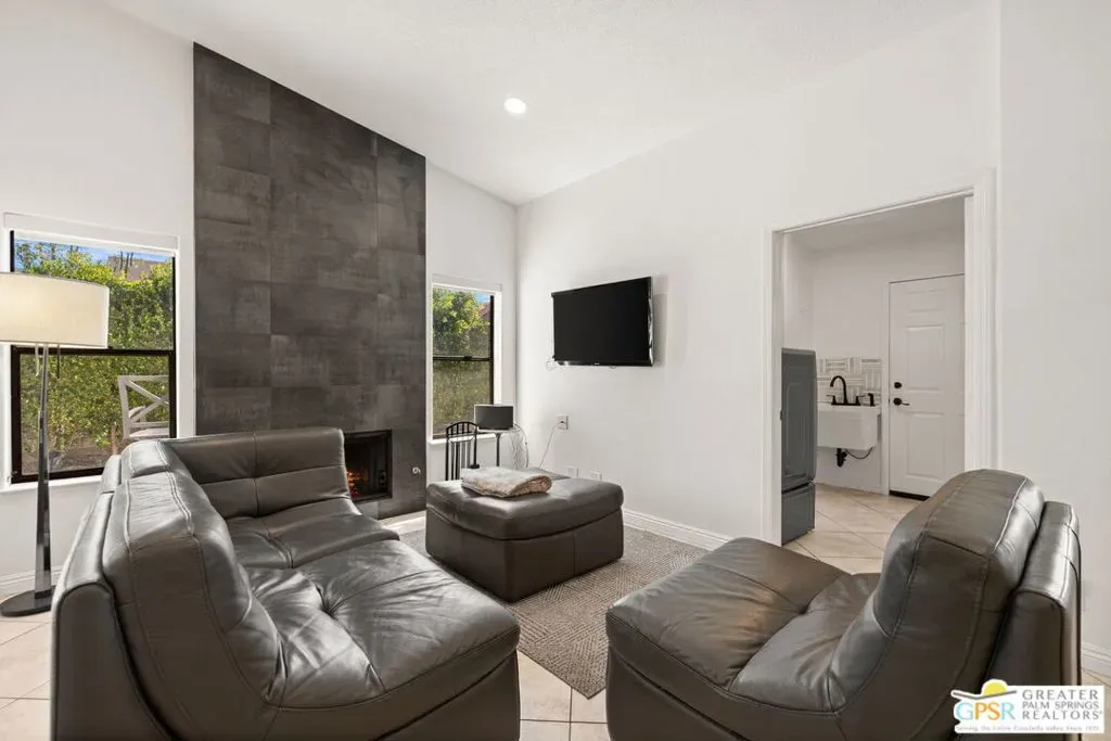 Available NOW | Furnished or Unfurnished | Private Cul-de-Sac | Mountain Views! Rare opportunity to lease a stunning hacienda-style home on one of Palm Desert’s most coveted streets a quiet, private cul-de-sac shared by just 16 homes with zero through traffic. Spacious, upgraded, and move-in ready today. Spanning 2,122 SF on an oversized 9,583 SF lot, this 3-bed, 2.5-bath single-story home offers the space and privacy of a true desert retreat. Soaring cathedral ceilings and expansive sliding doors open the living room to a large backyard framed by mature citrus trees and breathtaking mountain views perfect for entertaining or unwinding after a long day. The updated kitchen shines with brand-new countertops, new stainless steel appliances, and a sunny breakfast nook. The family room features a cozy brick gas fireplace and a wet bar, ideal for hosting. Recessed lighting and modern ceiling fans throughout give the home a fresh, contemporary feel.The private primary suite includes a spacious walk-in closet. The home has been freshly painted inside and out and features tile flooring throughout. 3-car attached garage room for vehicles, golf cart, or storage In-unit washer & dryer included Mountain views from backyard Mature citrus trees on oversized lot Steps from CV-Link trail for biking & outdoor recreation Pets welcome (cats & dogs OK)Unbeatable location walking distance to Palm Desert High School (rated 9/10), minutes to El Paseo shopping & dining, Westfield Mall, McCallum Theater, and College of the Desert. Available furnished or unfurnished. Virtual tours available – out-of-area applicants welcome. $4,500/mo | 1+ Year Lease | Available Immediately
