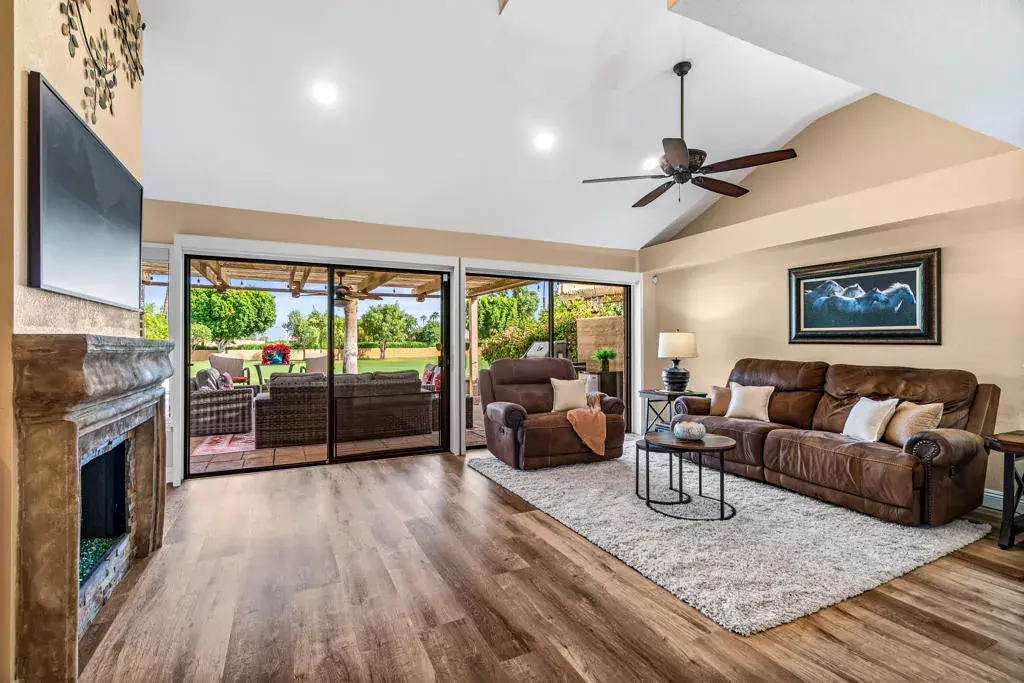 HUGE PRICE REDUCTION!!! SELLER SAYS SELL NOW – RIGHT NOW!Step into your dream home! This beautifully renovated condo offers modern luxury and comfort in every corner. The updated kitchen features refreshed cabinets, new appliances, and granite slab surfaces, perfect for entertaining. Personal design touches include electric blinds in the living room, recessed LED lighting in living room & kitchen, custom sculpted fireplace, and extra storage added in in the powder room.The open floor plan connects seamlessly to the spacious living area, where guests can relax and enjoy scenic views of the golf course.With 1,892 sq. ft. of living space, with additional sitting and office space in the upstairs master this home boasts two generously-sized bedrooms, a large ‘flex’ room that can be used as a den/bedroom/office/dining room, new flooring throughout, and a formal dining room with an adjacent cozy sitting area–perfect for winding down with your favorite beverage. The rear patio features a French drain and refurbished patio slab. New skylight brings in extra natural light and more custom cabinetry added in the garage.Located in the exclusive Woodhaven Country Club, residents can enjoy an 18-hole golf course, a full clubhouse, dining options, a fitness center, tennis and pickleball courts, and four pools and spas–heated during the winter months.Plus, with shopping and dining just a short walk away, this centrally located desert paradise offers the perfect blend of convenience and resort-style living. Your dream home awaits!