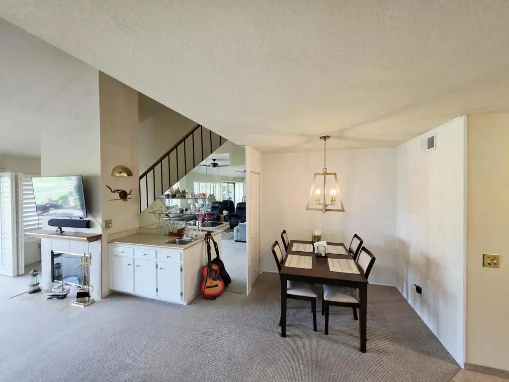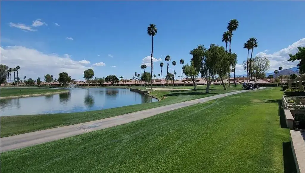Welcome to your new wonderful life style living inside the prestigious Woodhaven Country Club. As you enter the home’s front doors be ‘AMAZED’ by the surreal infinite views of the immaculate 18 Hole Golf Course, lakes, trees, and mountain backdrop from the comfort of your living room or the spacious covered patio where you can also enjoy the tranquility of those morning sunrises. This 1800 sq. ft. home offers one large upstairs Master Suite with room for an office or a quiet sitting area. There is a downstairs 2nd Master Bedroom, a 3rd Bedroom with a convenient Hall Bathroom. You will never be bored as you experience these following amenities…multiple Tennis and Pickleball Courts, 4 Swimming Pools/Spas, the Clubhouse with dining area, banquet room, and the excellent fitness workout facility. Nicely located to shopping, restaurants, local coffee house, entertainment, or short drive to Downtown Palm Springs too! Your ideal getaway home or permanent residence.