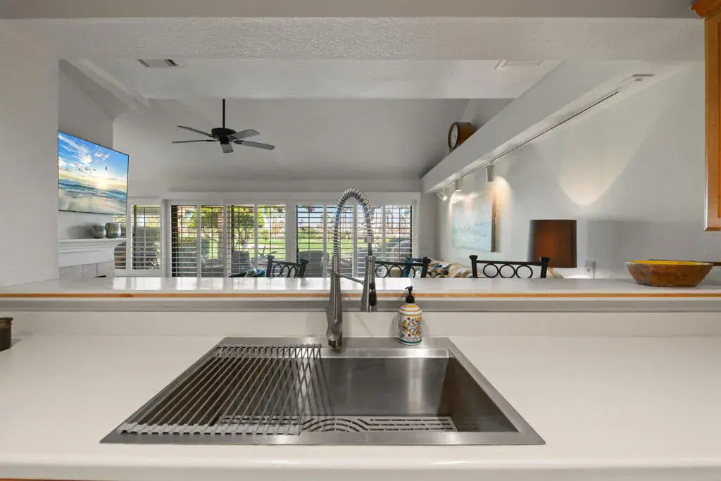 Wake up to peaceful mornings with coffee, casual lunches on the patio, or evening drinks with friends — all while taking in breathtaking panoramic views looking north, west, and east over the lush 7th fairway of Woodhaven Country Club. This beautifully maintained 1,896 sq. ft. Riviera floor plan features 2 spacious ensuite bedrooms plus a den (or optional 3rd bedroom), and 3 full bathrooms. One of the secondary bedrooms offers direct access to the atrium and can flex as an office or bonus space.Perfectly situated in the heart of Palm Desert, Woodhaven Country Club offers an active lifestyle with golf, tennis and pickleball courts, multiple pools, fitness center, and on-site restaurant and lounge. The home is move-in ready — ideal as a seasonal retreat or full-time residence. Inside, you’ll find updated stainless steel appliances, neutral finishes, large tile flooring, and a light-filled open concept living space designed for entertaining with effortless indoor/outdoor flow through the extended covered patio overlooking the fairway. Meticulously cared for and offered turnkey furnished.This is your opportunity to fully enjoy the desert lifestyle — come see it in person and make it yours.