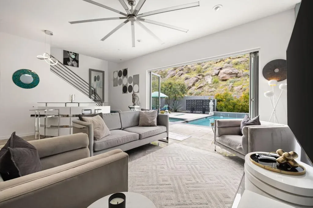 Beautiful modern desert retreat available for lease in highly desirable South Palm Springs. This stylish home offers stunning mountain views, an open and light-filled floor plan, and seamless indoor-outdoor living designed for the Palm Springs lifestyle. The spacious living areas flow effortlessly to a private resort-style backyard featuring a sparkling pool, spa, and expansive patio perfect for relaxing or entertaining under the desert sky. Ideally located just minutes from downtown Palm Springs, world-class dining, shopping, golf, and hiking, this exceptional property offers the ultimate combination of comfort, privacy, and luxury desert living.