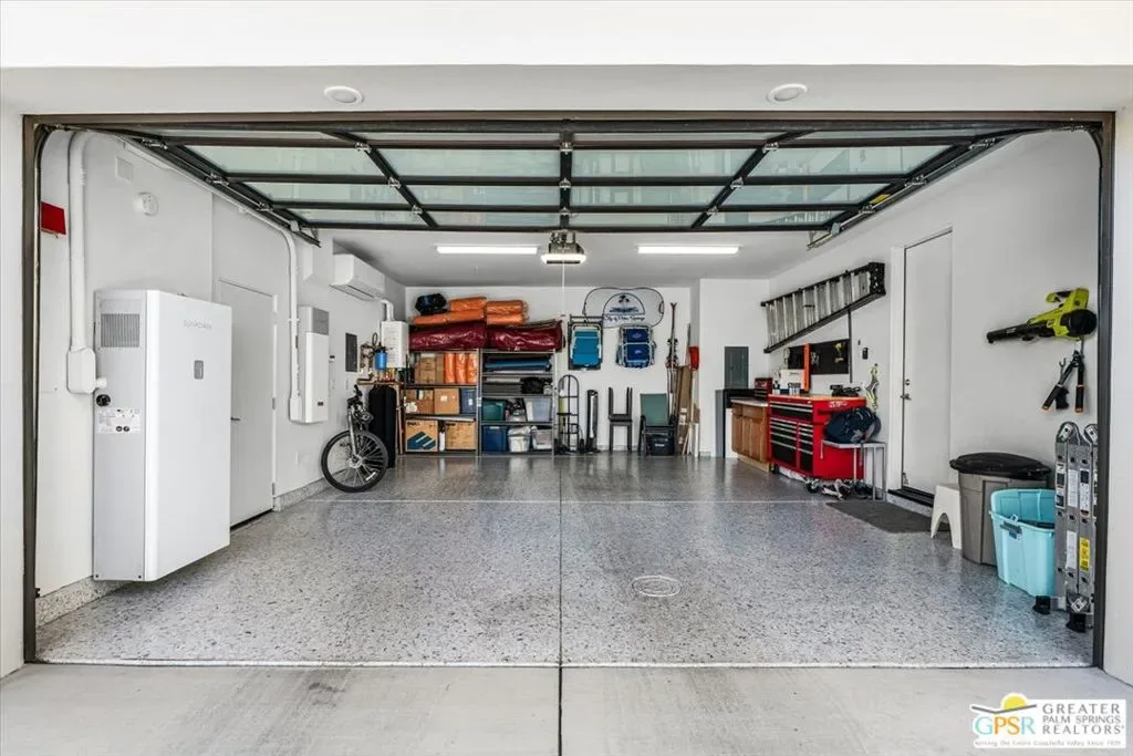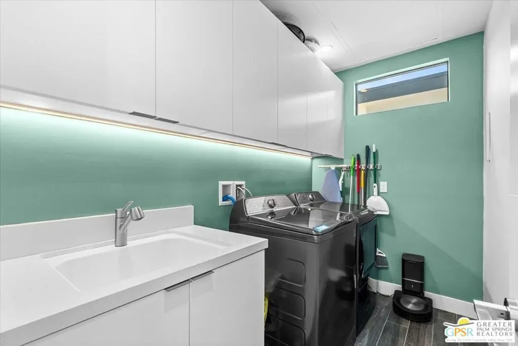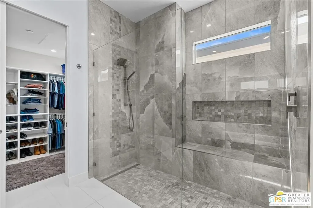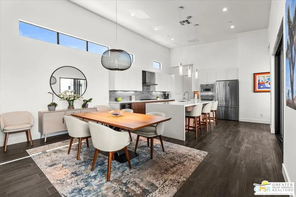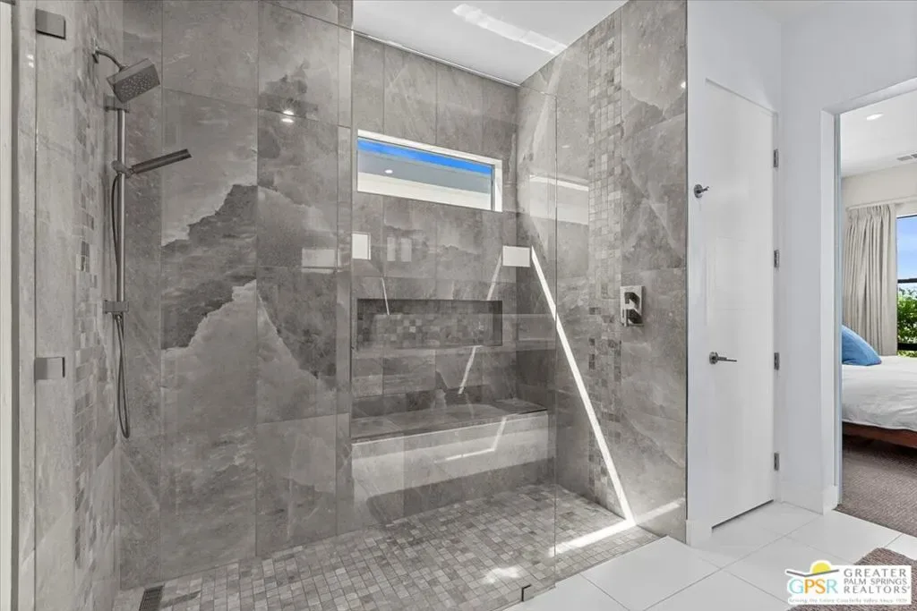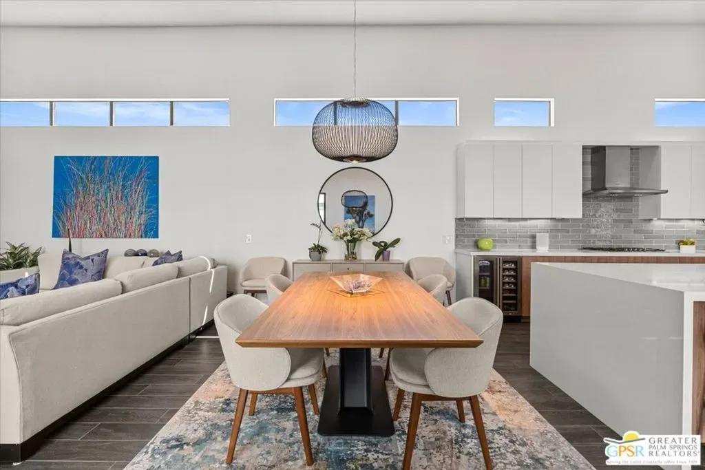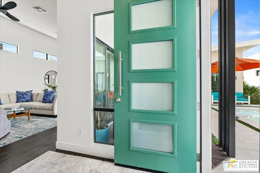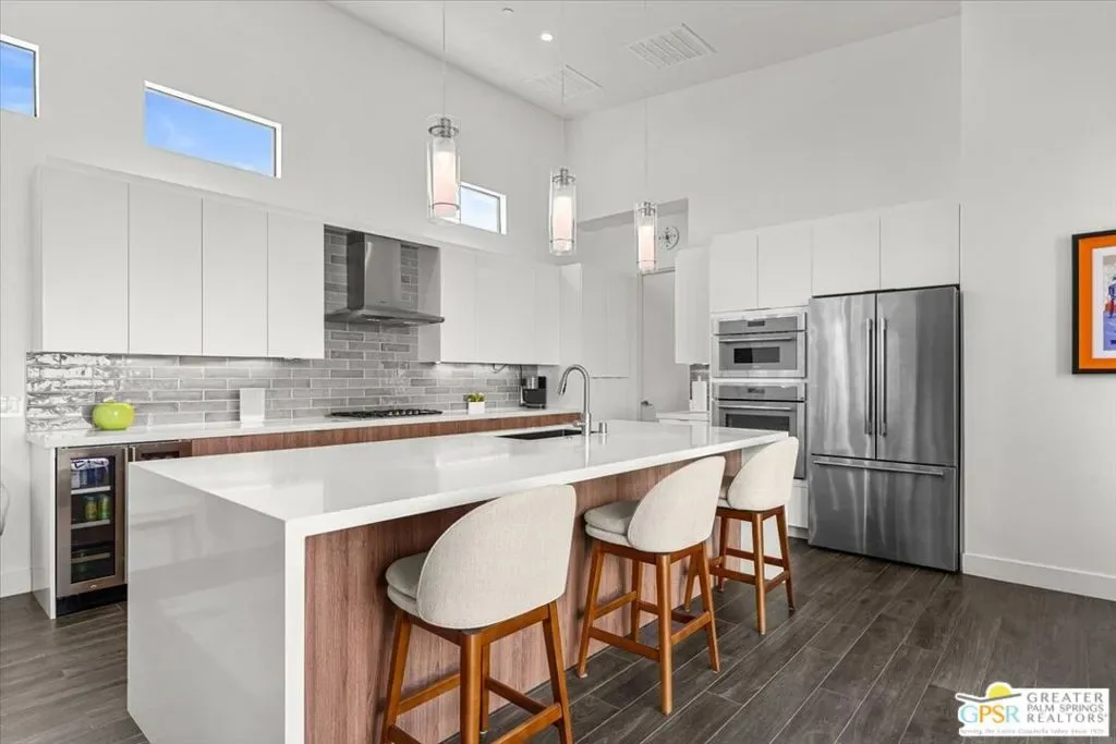 Located in the heart of vibrant Palm Springs, this modern home in the gated community of Vue is your perfect desert retreat. With 3 spacious bedrooms and 3 beautifully upgraded baths, this property is packed with luxurious features that elevate everyday living. Step inside to discover a sleek, open layout boasting a gourmet kitchen equipped with upgraded appliances, a gas fireplace for cozy evenings, and high-tech touches like electronic blinds, drapes, and a Sonos surround sound system. Ceiling fans throughout and a custom-built primary closet add both comfort and style. Outside, soak up the desert sunshine in your private oasis with dining, seating and lounging areas. The saltwater pool and spa, complete with water features and a pebble tech finish, are complemented by a Cool-Tech patio and a built-in BBQ station perfect for entertaining or unwinding under the stars. Additional perks include 34 owned solar panels with a backup battery, a full house water filtration and purification system, plus an air-conditioned, epoxy-floored 2-car garage. For added peace of mind, the home is equipped with an alarm system, cameras, a DoorBird entry system and whole house surge protection. This is more than just a home; it’s a lifestyle. Don’t miss your chance to own this stunning Palm Springs gem!