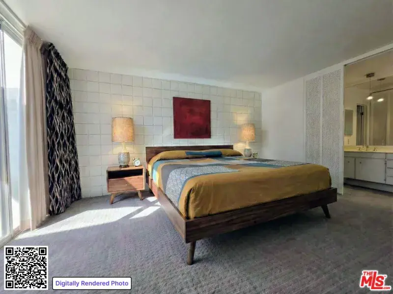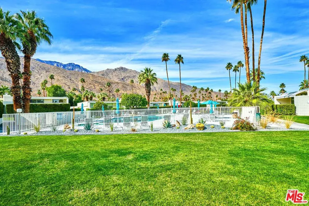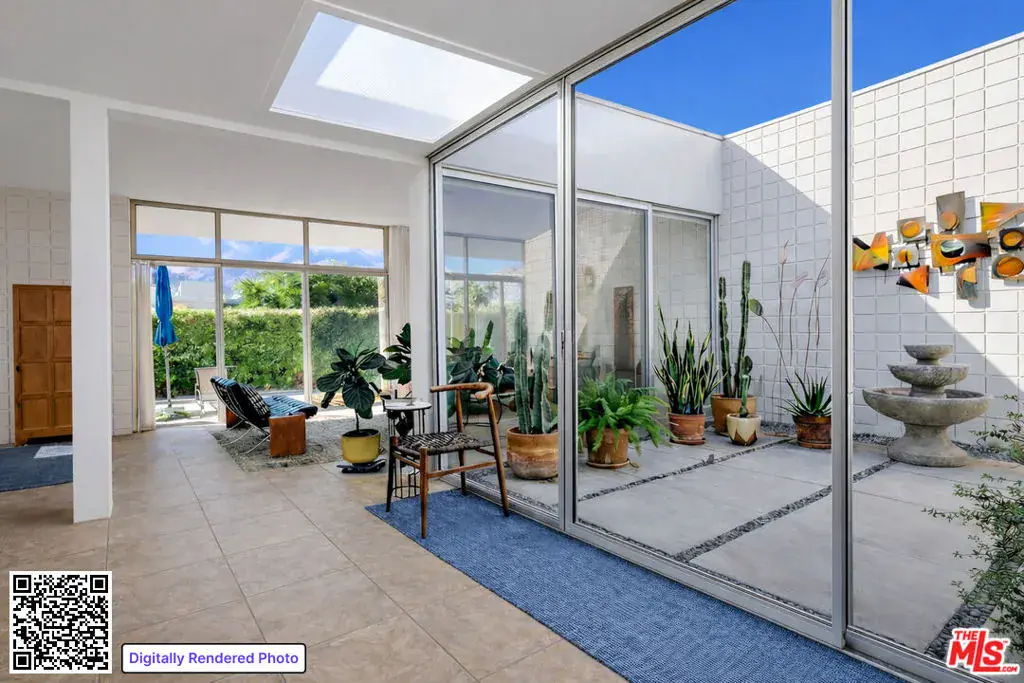 In 2024, upon the recommendation of the Palm Springs Preservation Foundation, the Palm Springs City Council unanimously voted 5-0 to officially designate Country Club Estates as one of the city’s distinguished Mid-Century “Historic Districts”. This gorgeous 30-unit PUD, designed by renowned architect A. Quincy Jones, FAIA (known for Sunnylands), is the only residential housing in the entire Coachella Valley crafted by this legendary architect available for purchase. A rarity indeed. It is even rarer when one of these sparkling gems comes to market, with many original features still intact. Sitting on one of the most prime pieces of FEE land (you own it) in treasured South Palm Springs, you are encapsulated by mountain ranges in front and behind you. This desirable end-unit is approached by a tranquil, desert-landscaped pathway that sets a welcoming tone from the moment you arrive. Inside, many original mid-century features have been beautifully preserved, showcasing authentic architectural character throughout. The peek-a-boo kitchen opens to a spacious living area with soaring 10-foot ceilings and the iconic original cinderblock design, creating an open, light-filled atmosphere. A striking central atrium bathes the home in natural light while offering a private, open-air retreat that extends the living space. The primary suite features original sliding screens that reflect Jones’ thoughtful open-plan design. Bathrooms retain their original cabinetry and tilework, and a private laundry area adds everyday convenience. The home is beautifully maintained and immediately livable, offering exceptional potential to elevate and add value with thoughtful modern updates. There is also a spacious private back-patio, perfect for a tranquil morning coffee, sunkissed afternoons with a book, or enchanting al fresco dinners at twilight, inviting a seamless indoor-outdoor lifestyle. The patio offers stunning, forward-facing views of the San Jacinto mountain range. This feature is only available in west-facing units, which rarely come to market. Off the patio area, a quick trot down a path reveals the exquisite complex pool and spa. Lounge chairs dotted with aqua-blue umbrellas offer sweeping mountain views, rivaling any resort-style retreat. The manicured grounds contain 60-year old mature olive trees, original grassy meadows, and meandering pathways complemented by modern desert landscaping. The development is a fan-favorite, consistently selling out during Modernism Week tours, which help fund HOA improvements. Experience the best of Palm Springs from this perfectly situated location, with shopping, restaurants, and picturesque hiking trails waiting to be explored. Country Club Estates, along with this charming and increasingly rare unit, offers more than just a place to call home. It embodies a modern lifestyle within a mid-century oasis, steeped in history and destined to remain one of Palm Springs’ most cherished architectural landmarks. (Property is tenant occupied and Buyer to cooperate with Seller for a 1031 exchange.)