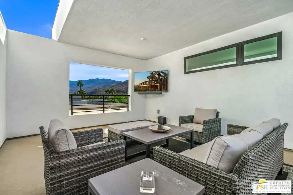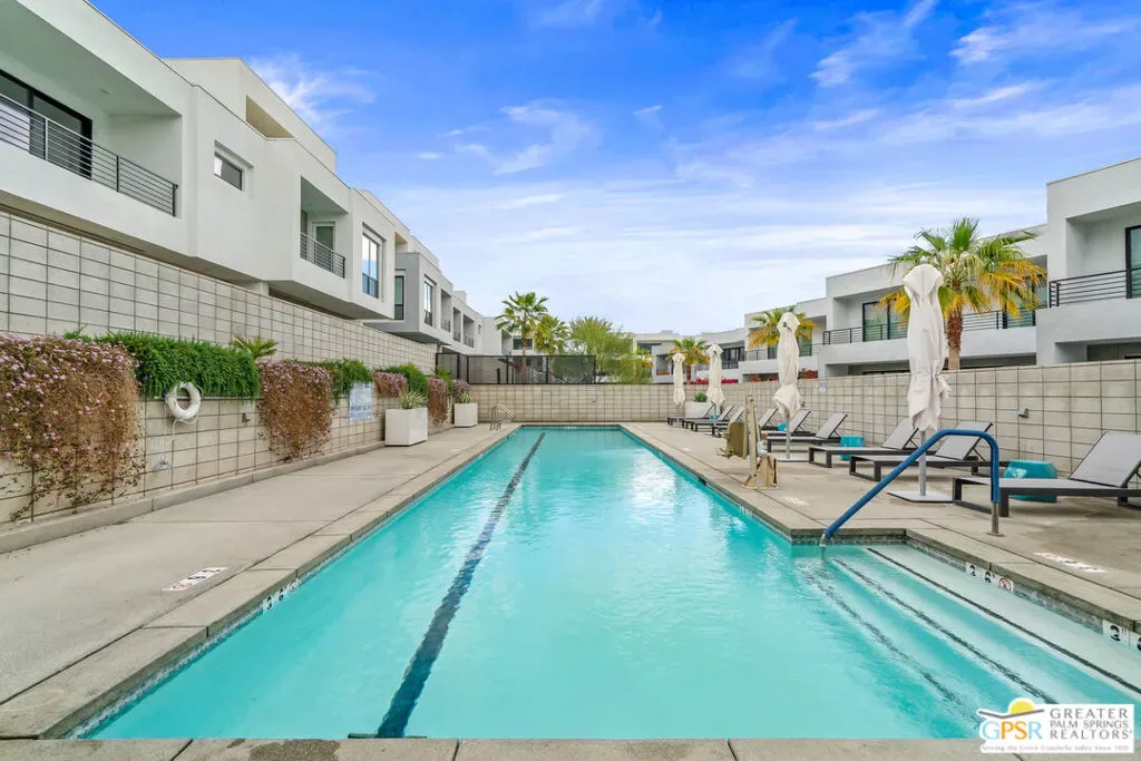 Spectacular end unit at popular & sought after Cody Place. Offering voluminous and refined spaces, this townhome lives like a single-family home but offers the convenience of a low maintenance yard and a “lock and leave” gated community close to downtown shops, coffee houses and eateries! Incredible open floor plan with a private patio, 2 Master en-suites and an incredible covered roof top party or relaxation deck cozy enough for two but large enough for dozens. Some furnishings available outside of escrow. Clean as a whistle so you can move in, unpack and enjoy the Palm Springs lifestyle you deserve. Just steps to the community pool that you do not have to maintain. Minutes to PSP International and freeways for weekend commuters.