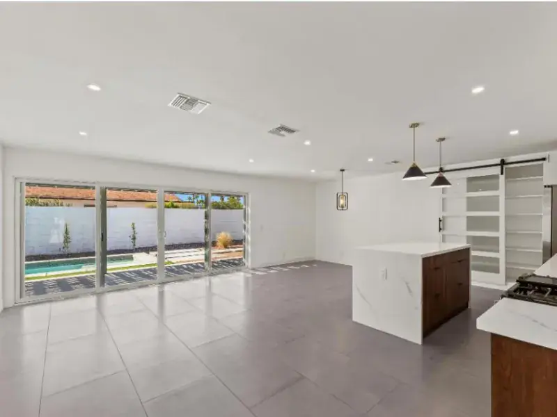 Clean lines, generous light, and an easy indoor-to-outdoor connection define this 3-bedroom, 2-bath Palm Springs home. Wide tile flooring runs through open living areas, while large sliding doors draw your eye straight to the yard and pool, creating a relaxed rhythm that feels right for desert living. Your main living space stays open and adaptable, anchored by a modern kitchen with a spacious island, complemented by sleek cabinetry, contemporary appliances, and pendant lighting that adds character to the space. Sightlines stay open toward the dining area and backyard, making everyday moments feel connected. One pet is allowed, with breed restrictions, offering room for a furry companion to settle in as well. Step outside to enjoy a private yard designed for warm days, featuring a covered patio and a refreshing pool that becomes a natural extension of the living space. Nearby options include Albertsons and Jensens Finest Foods for groceries, casual stops like Koffi for coffee, and local dining along North Indian Canyon Drive. Ruth Hardy Park and Desert Highland Park offer green space and recreation, while downtown Palm Springs stays just minutes away for shopping, art, and events. *Pet weight limit is 35 lbs – if your pet exceeds this, please reach out.