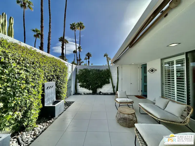 Originally designed by architect Richard Harrison in 1967, this renovated 2 Bedroom/ 2 Bath home features 1,545 sq. ft of living space. Enjoy a great season in this western exposure unit with inside/outside living and everything needed to spend the winter in Palm Springs. Seven Lakes Country Club, 15 pools/spas, 18 holes of golf on the Ted Robinson designed course, tennis, pickle ball and dinning in the communities William Cody designed clubhouse.