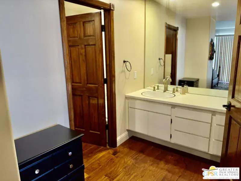 Welcome to Andreas Hills, an enclave of million dollar homes with million dollar views and underground utilities. This quiet area of South Palm Springs, close to the Indian Canyons is known for its hiking trails and scenic vistas. This 2 bedroom 2 bath condo is 1,882 Square feet. it has a double car garage with direct entry into a very private front courtyard entry… all on one level with green belt surrounding the unit. This condo has been upgraded with real walnut wood flooring throughout. The gated entry and front patio area with incredible mountain views gives you lots of privacy and feels more like a single family home. The pool and spa are a stones throw from the back patio. This contemporary one level handsome condo is a perfect desert getaway or full time sanctuary. Show it…it sells itself!