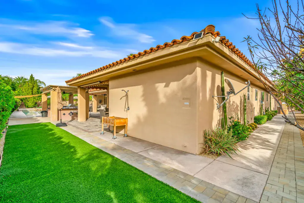 Welcome to 725 W. Azalea Circle, a thoughtfully upgraded desert retreat offering 4 bedrooms, 6 bathrooms, plus a dedicated office, with stunning mountain views and exceptional indoor-outdoor living. Since 2016, this home has been extensively improved with meaningful upgrades designed for comfort, convenience, and resort-style enjoyment.The heart of the home is the beautifully remodeled chef’s kitchen, featuring new cabinetry, countertops, and backsplash, a butler’s pantry, and high-end appliances including a Sub-Zero refrigerator and KitchenAid double oven and cooktop. New flooring spans the home (excluding the office), complemented by battery-operated blinds throughout and a tankless hot water heater for modern efficiency.Outside, the property truly shines with a reimagined outdoor experience: a replastered and retiled pool and spa with a tanning shelf, new pool/spa heater and filter, and an entertainer’s dream setup with a built-in outdoor kitchen complete with BBQ, sink, and refrigerator. Enjoy year-round comfort with an outdoor misting system, electric exterior shades, and low-maintenance landscaping including a desert-style front yard and a backyard finished with rock and artificial turf. Beautiful pavers add style and function with upgraded walkways and a paver driveway.Additional highlights include a remodeled primary bathroom, a Murphy bed installed in the second guest room, upgraded front entry with a glass front door, gated front courtyard entry, and three new AC units replaced in 2016. With no current short-term rental caps in South Palm Springs, this property also presents an exciting opportunity for buyers seeking a vacation rental-ready home. Its layout, multiple bathrooms, and resort-style outdoor living make it exceptionally well-suited for a high-demand desert getaway. Buyer to verify all short-term rental regulations, permitting requirements, and any future changes with the City of Palm Springs.A rare opportunity to own an extensively upgraded home designed to enjoy as-is or tailor to your taste. Ideal for a primary residence, second home, or vacation rental lifestyle.